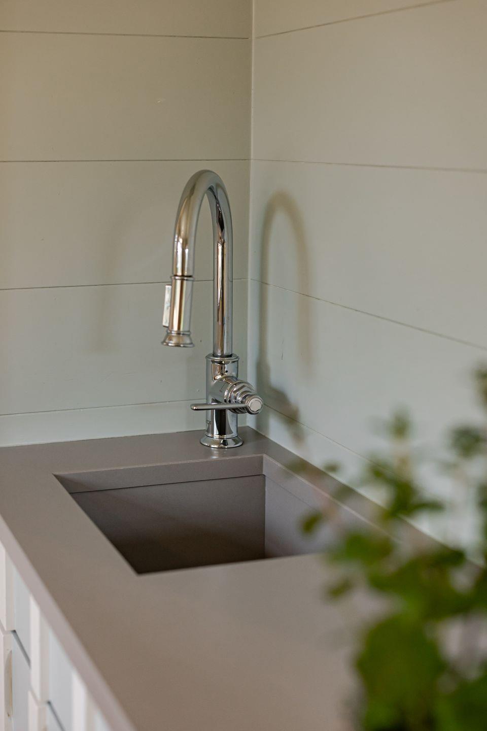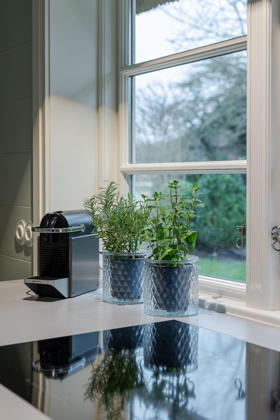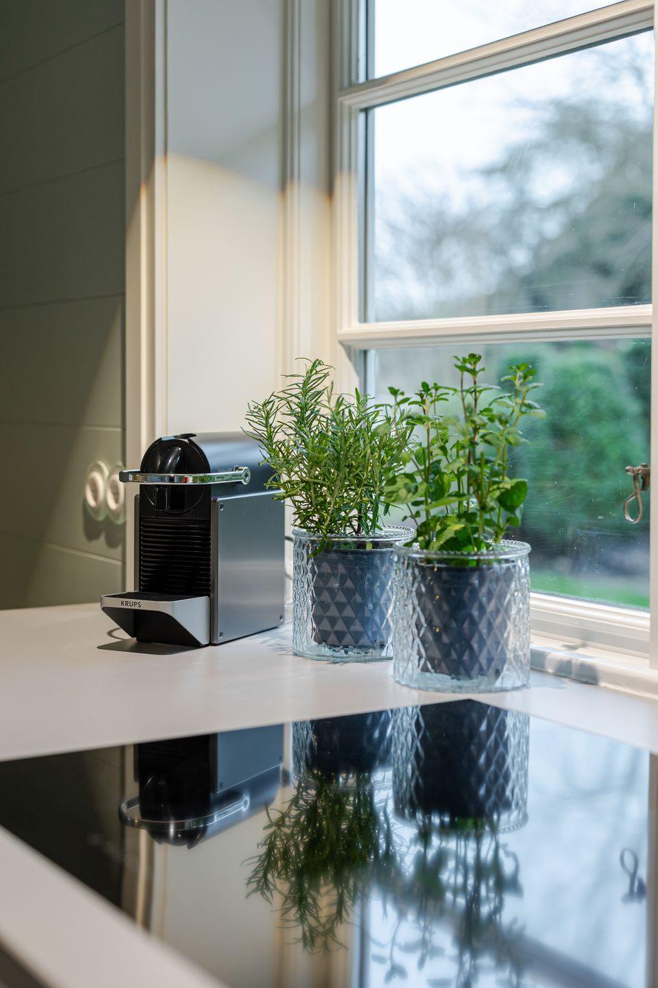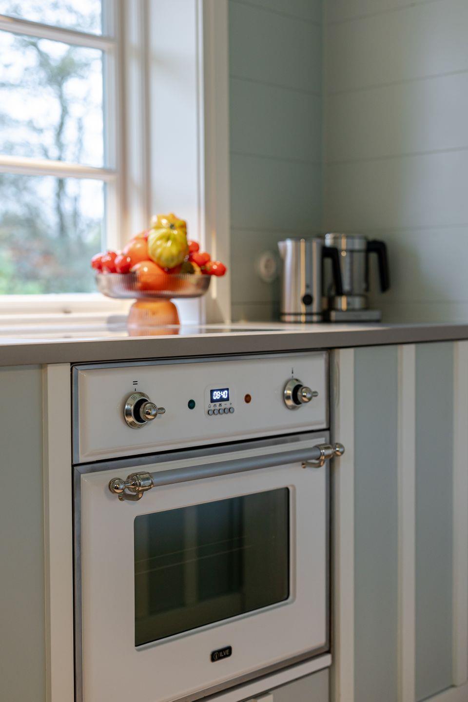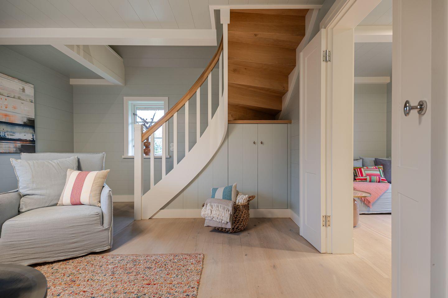 Das liebevoll gestaltete Häuschen besticht durch hochwertige Holzeinbauten, die ihm eine warme Atmosphäre und natürliche Eleganz verleihen.