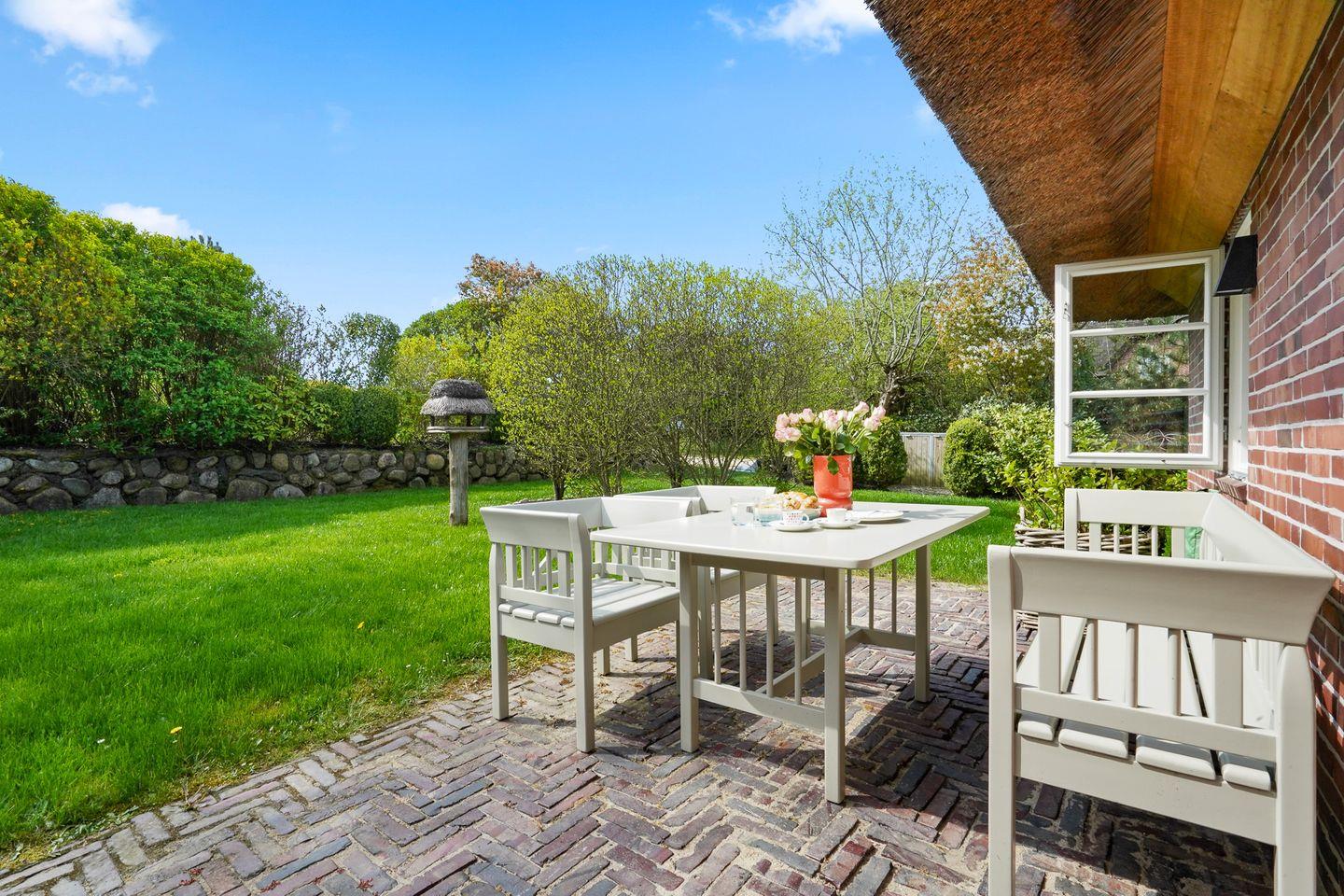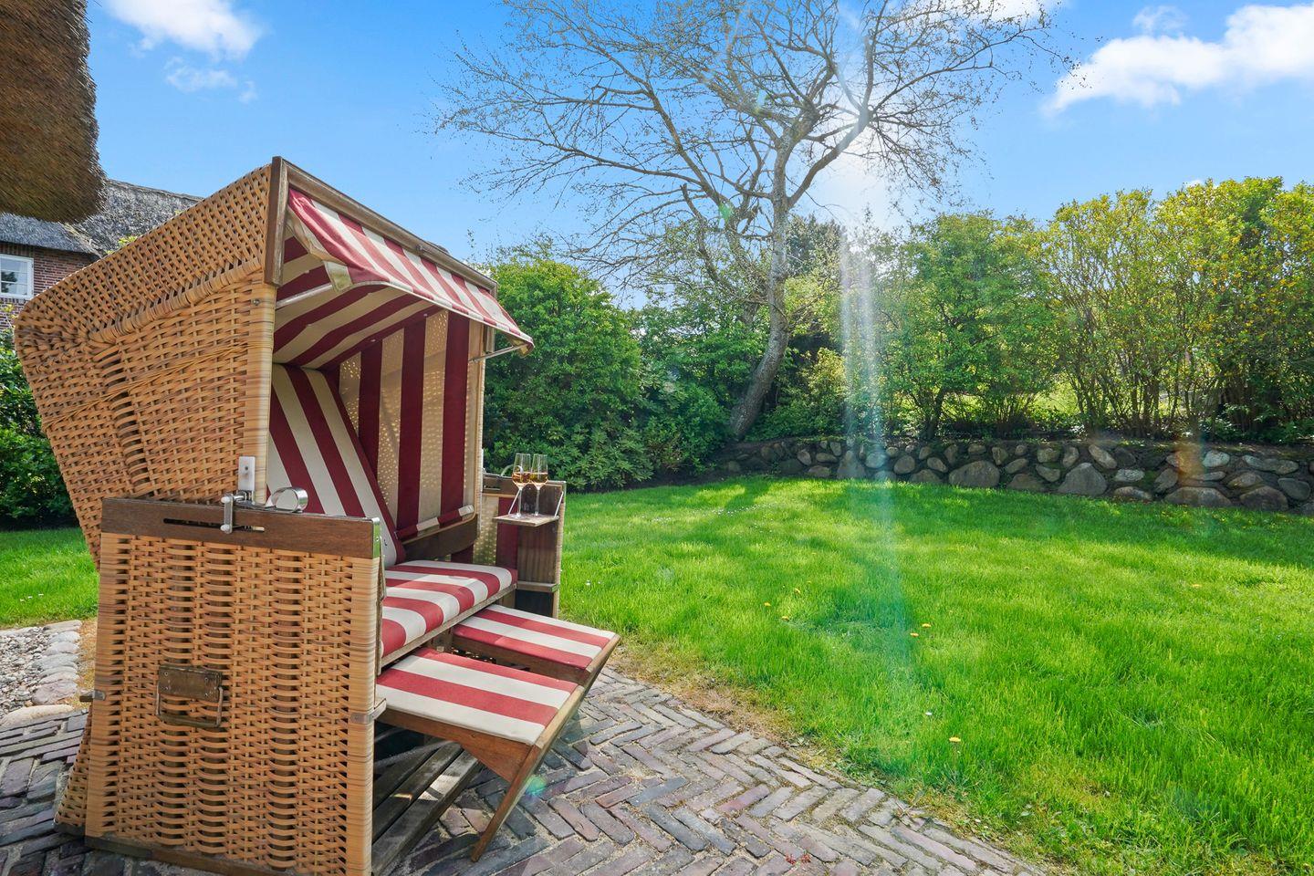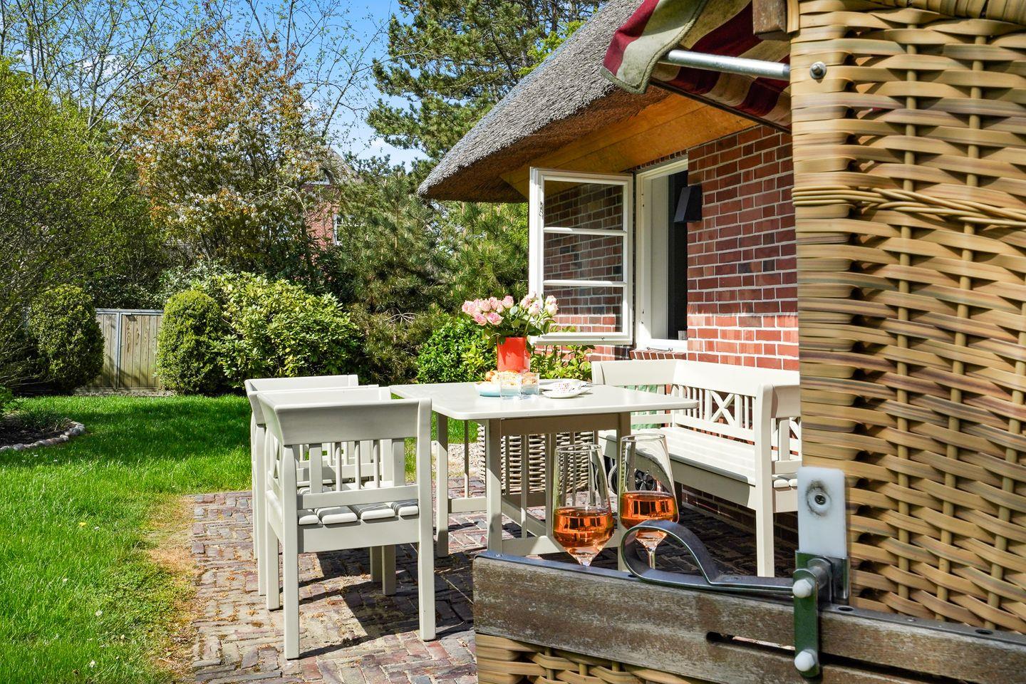 Charmantes Reetdachhaus in Kampen mit großem Garten und Kamin für entspannte Tage.