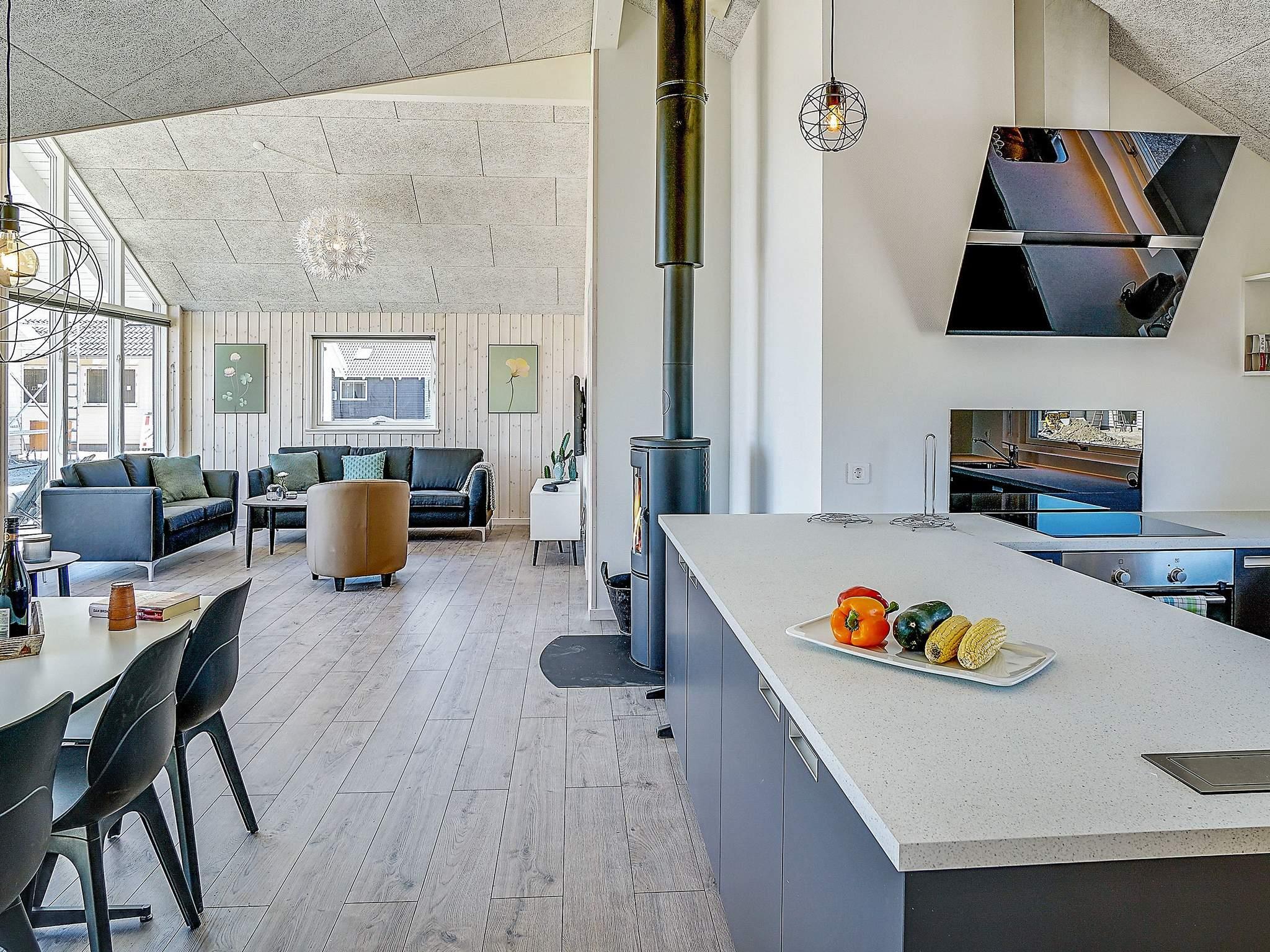 das Bulls Eye der Dartscheibe. Auch eine PlayStation4 ist vorhanden sowie eine Bar mit Kühlschrank - ideal, wenn Sie einen erfrischenden Drink mixen möchten. In dem Ess-und Wohnbereich gibt es u.a. einen Holzofen, der an kühlen Tage behagliche Wärme verströmt, sowie Fernseher und