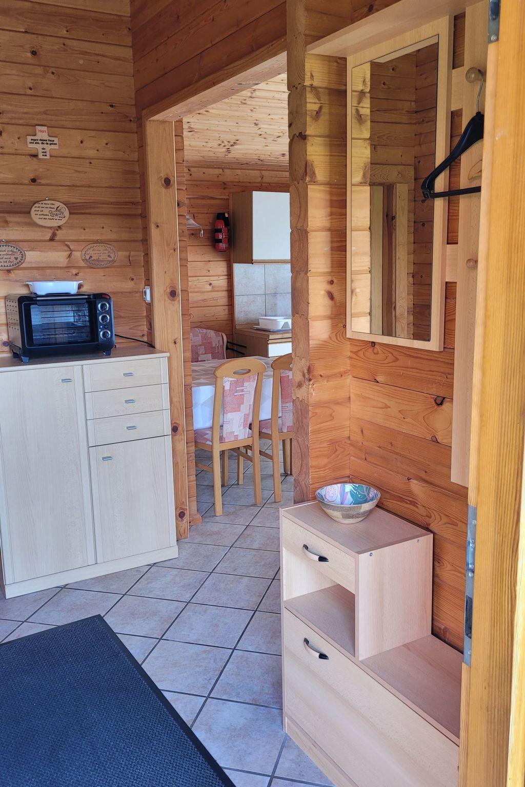 Die Ferienwohnung Nr.5 befindet sich in einem alleinstehenden Holzhaus am Anfang des Dorfes. Im Haus befindet sich der Wohnraum, die Küche mit Eßecke und das Bad mit Dusche/WC und Waschtisch. Durch eine Balkontür gelangen Sie zur Außenterrasse. Wohnraum, Küche und Eßecke sind als offene Bereiche miteinander verbunden. Der Wohnbereich ist mit einem Sat-TV, CD-Player, Radio und einer gemütlichen Couch ausgestattet. Im hinteren Teil befinden sich die beiden Schlafräume. Der erste Schlafraum enthält ein Doppelbett mit 140 cm Breite, der Zweite zwei Einzelbetten mit jeweils 80 cm Breite.. Die Terrasse ist mit Sonnenschirm und diversen Gartenmöbeln ausgestattet.