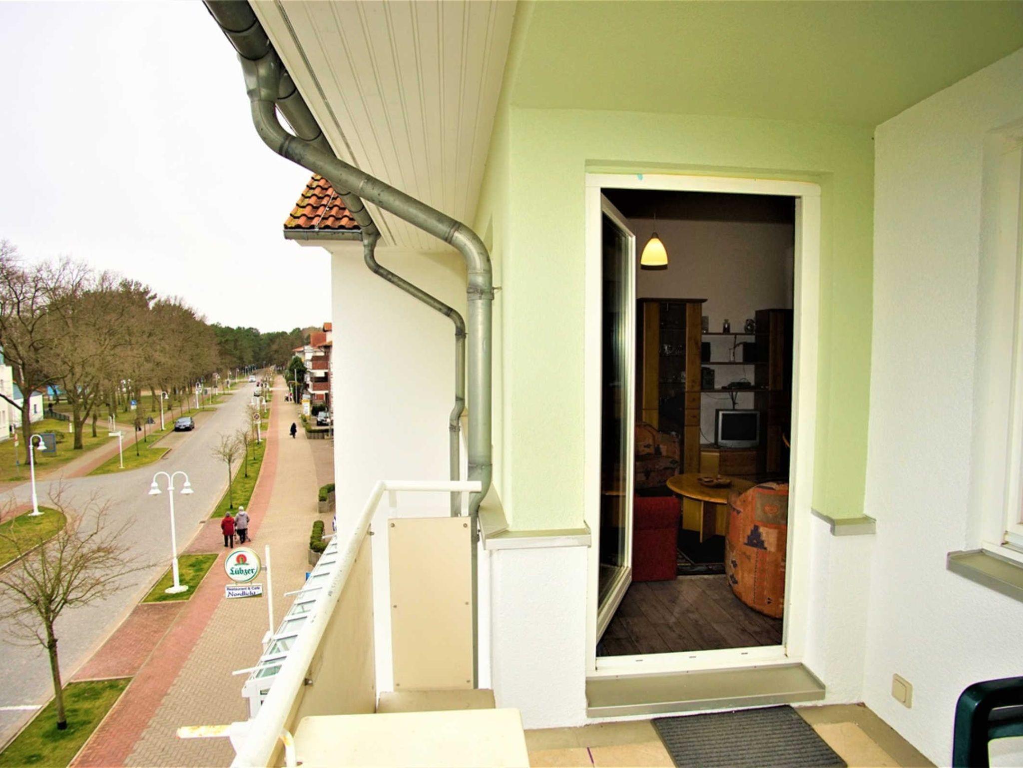Vom Balkon aus haben Sie einen Blick auf die Strandstraße sowie den gegenüberliegenden Dünenwald. Der Balkon ist mit 4 Gartenstühlen (inkl. Auflagen) und einem Tisch ausgestattet.