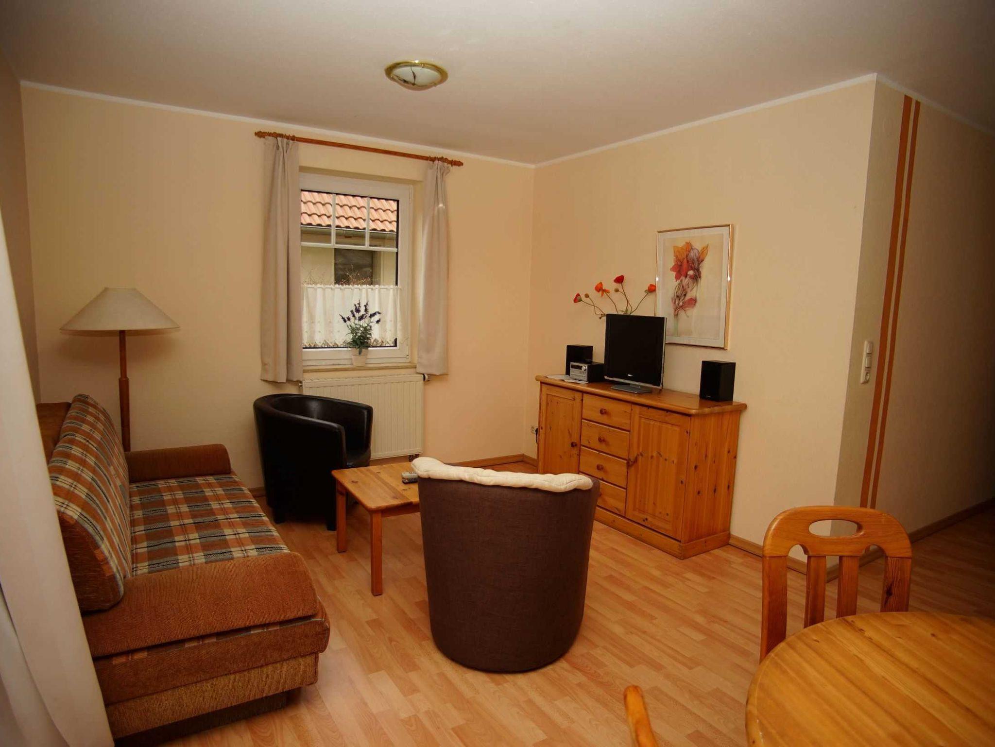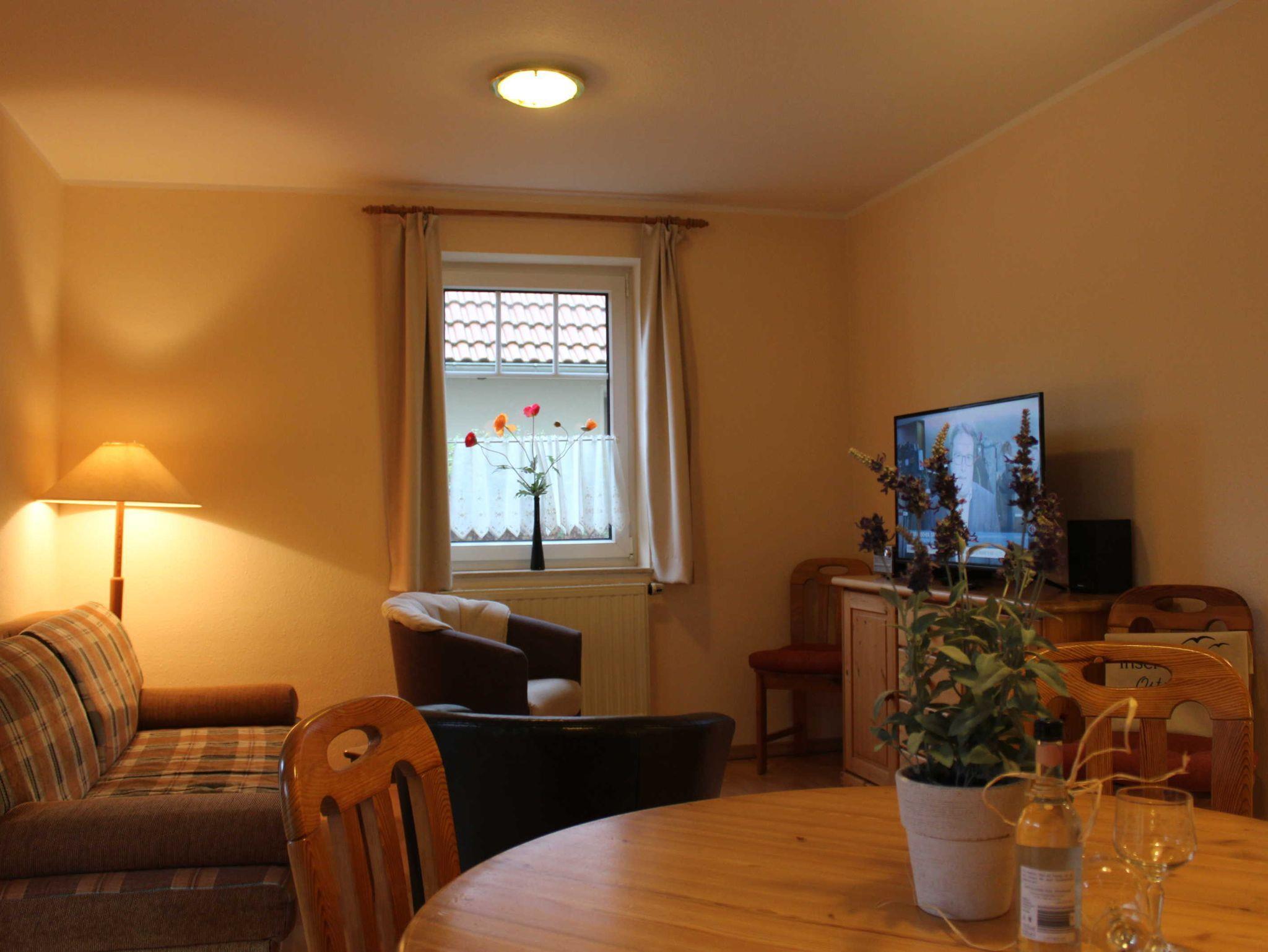 Im Wohnbereich befindet sich eine Couch, die als Schlafcouch für 2 Personen genutzt werden kann. Vom Wohnbereich gelangen Sie auf die Terrasse. Hier können Sie auch rauchen.