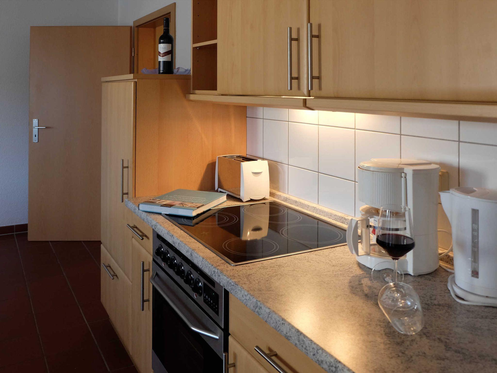 ? Küche mit Herd und Backofen, Kühlschrank, Kaffeemaschine, Wasserkocher, Geschirr und Besteck u.v.m.