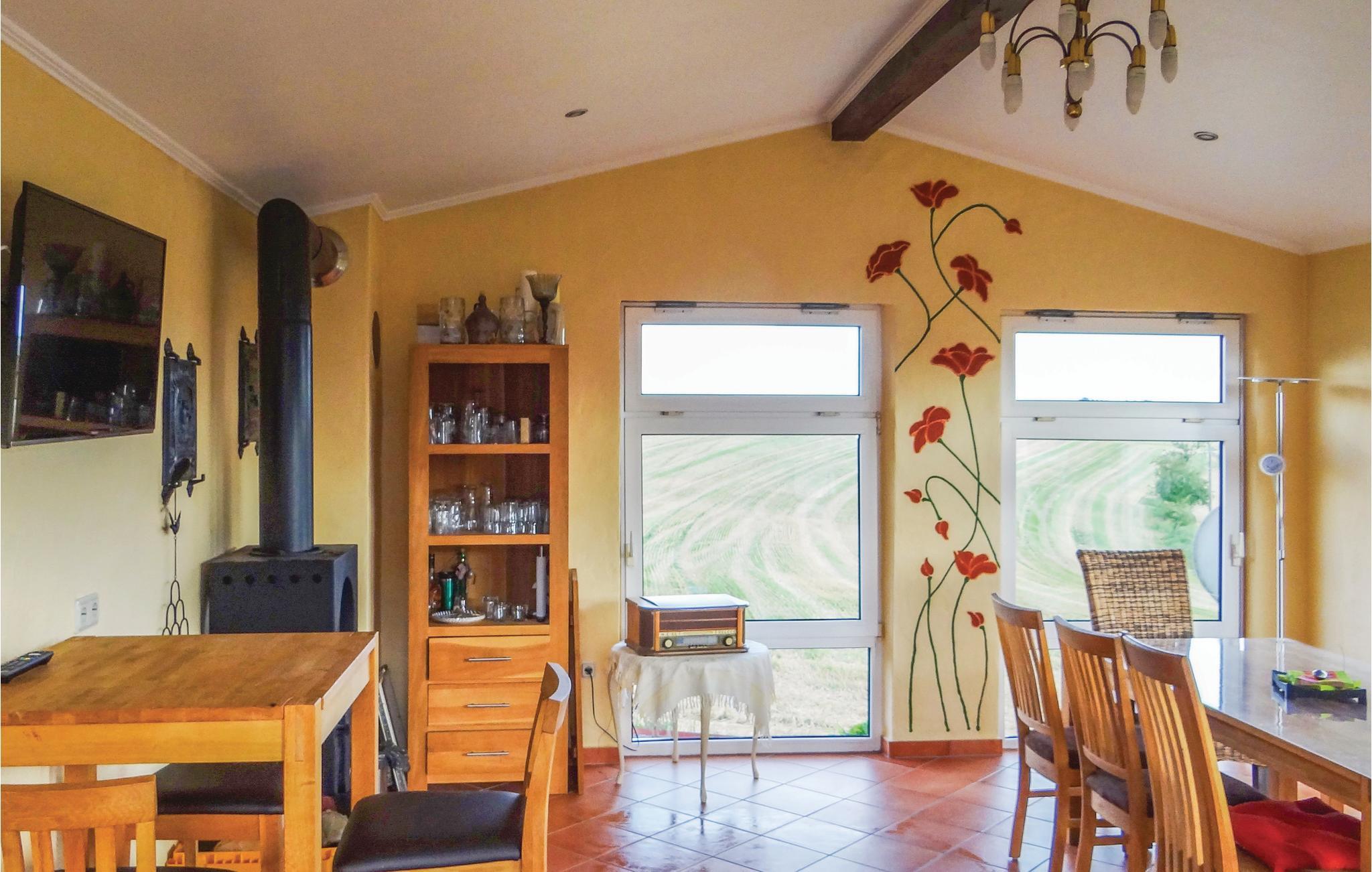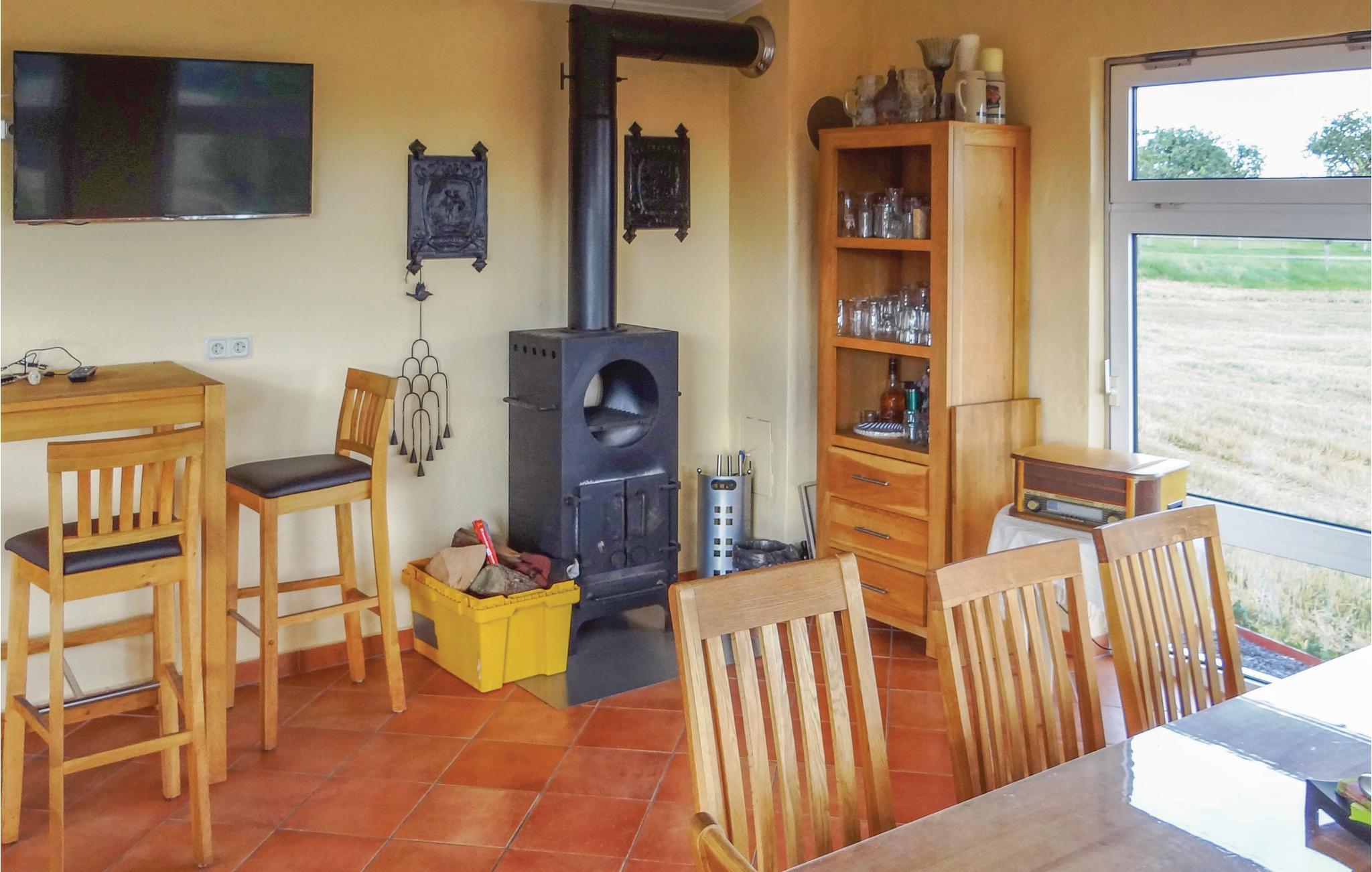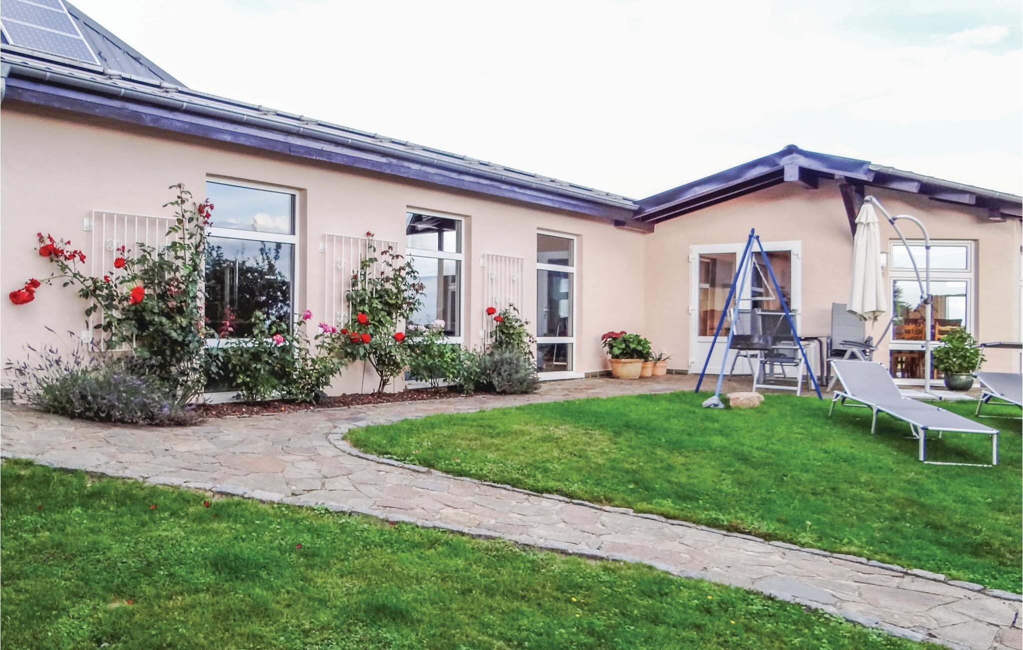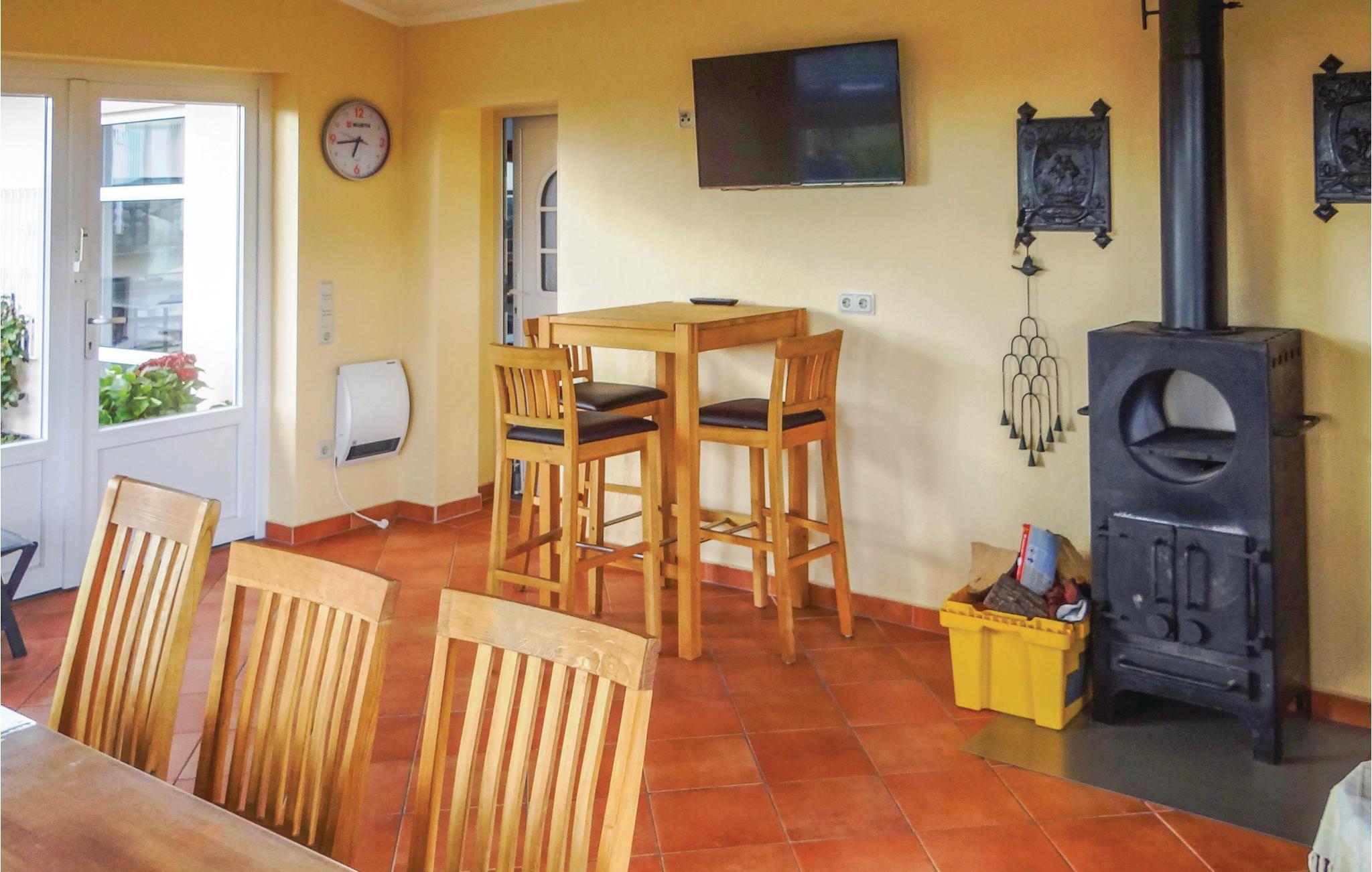 Diese Ferienwohnung in Karlshausen lässt nichts zu wünschen übrig. Sie ist hell und modern eingerichtet, und es stehen Ihnen viele Extras zur Verfügung, zum Beispiel ein Gartenhaus mit Grill und Holzofen, ein Trampolin und ein Kachelofen, der eine angenehme, extra Heizquelle bietet. Das Holz für den Ofen wird Ihnen kostenlos zur Verfügung gestellt. Eines der Schlafzimmer hat einen begehbaren Kleiderschrank. Der gepflegte Garten lockt mit vielen Sitz- und Liegemöglichkeiten und einer schönen Aussicht. Auf Anfrage stellt der Vermieter bei gutem Wetter gern ein Kinderbecken mit Rutsche auf. In der Garage bzw. Halle gibt es eine Tischtennisplatte, eine Schaukel und eine Dartscheibe. Auf dem Grundstück befindet sich eine Wasseranlage, die aber der Vermieter auf vorheriger Anfrage für Kinder absichern kann. Angrenzend hat der Vermieter einen Bauernhof mit mehreren Pferden. Dort können Sie Reitunterricht bekommen, und Sie haben auf Anfrage und gegen Gebühr die Möglichkeit, Ihr eigenes Pferd mitzubringen. Die Unterbringung eines eigenen Pferdes kostet ab EUR 15/Tag, und der Reitunterricht beginnt bei EUR 15/Stunde in der Gruppe und bei EUR 30/Einzelstunde. Auf der Wiese gegenüber vom Haus grasen meistens zwei Ponys. Ihre frischen Brötchen erhalten Sie gegenüber im kleinen Supermarkt. Karlshausen ist eine Gemeinde in der Eifel in Rheinland-Pfalz und gehört der Verbandsgemeinde Südeifel an. Im Naturschutzgebiet Irsental können Sie sehr schön wandern, und bei Arzfeld (8 km) verläuft ein fast überall gepflasterter Fahrradweg entlang einer ehemaligen Eisenbahnlinie mit Verbindung nach St. Vith, Prüm, Neuerburg, Irrel usw. Arzfeld lockt auch mit einem kleinen See. Schwimmbäder finden Sie in Neuerburg und Prüm.