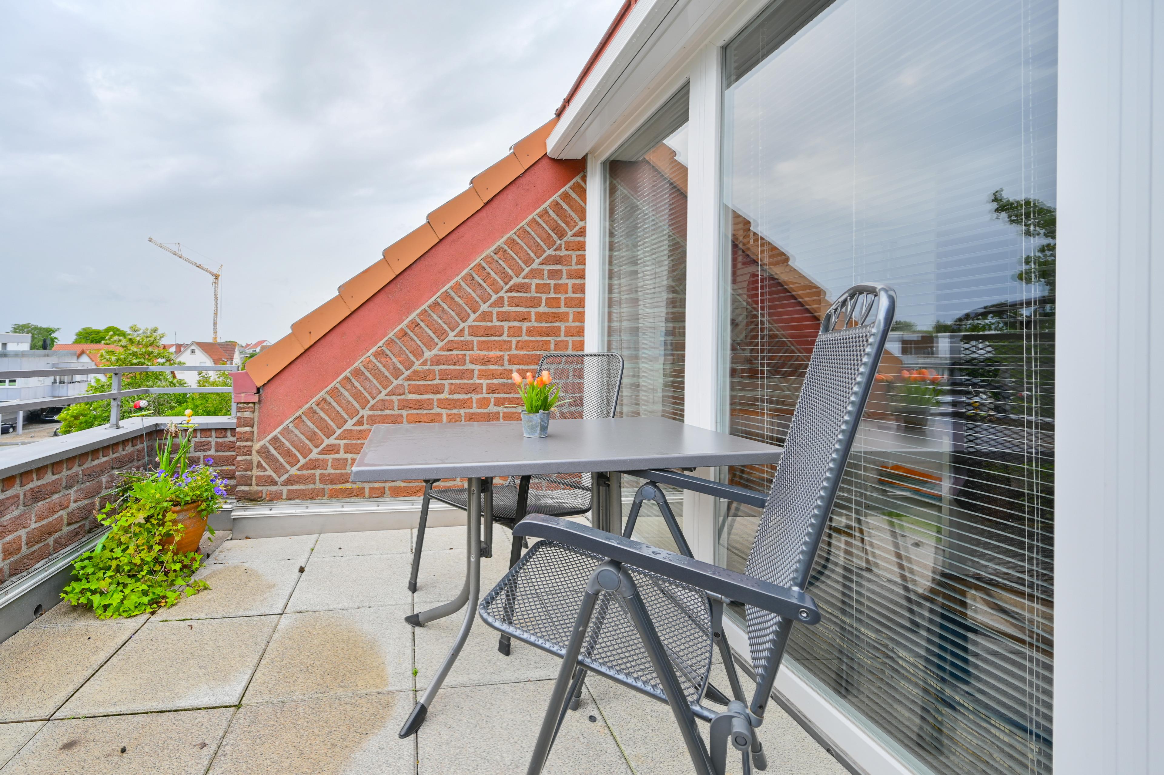 Von hier aus haben Sie auch Zugang zum möblierten Balkon.
