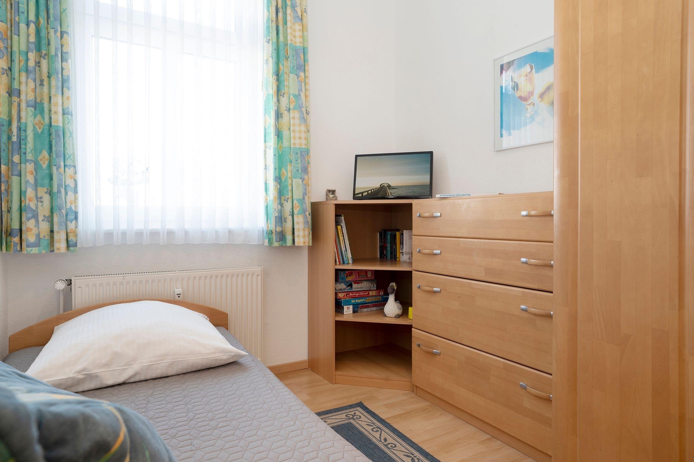 Schlafzimmer 2: 1 Einzelbett (ca. 90x190 cm), Kleiderschrank, Verdunkelung: Rollläden