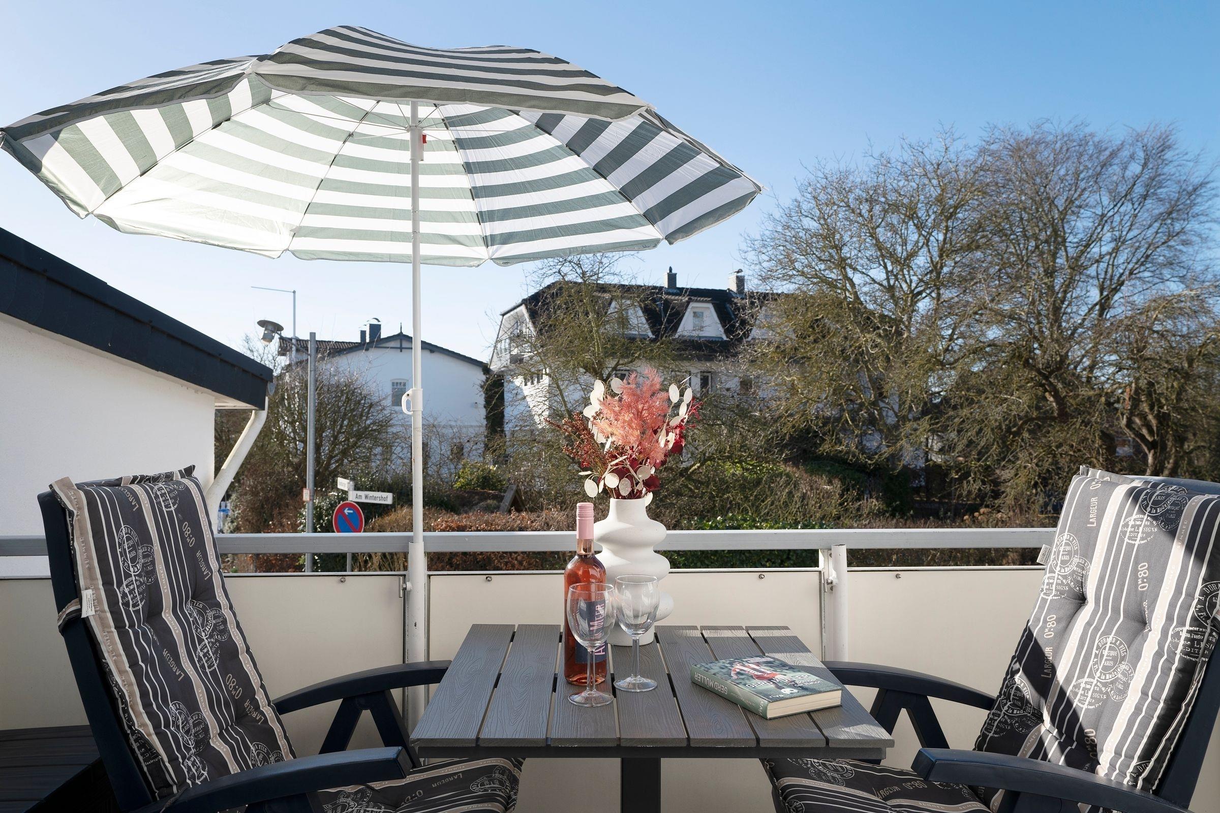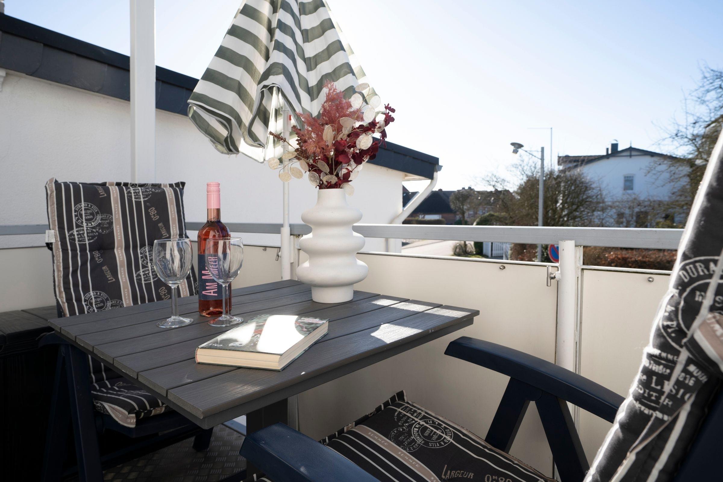 Moderne Ferienwohnung Sonngard mit Balkon in Kellenhusen, nur 500 m vom Strand entfernt, ideal für entspannte Ostseeferien.