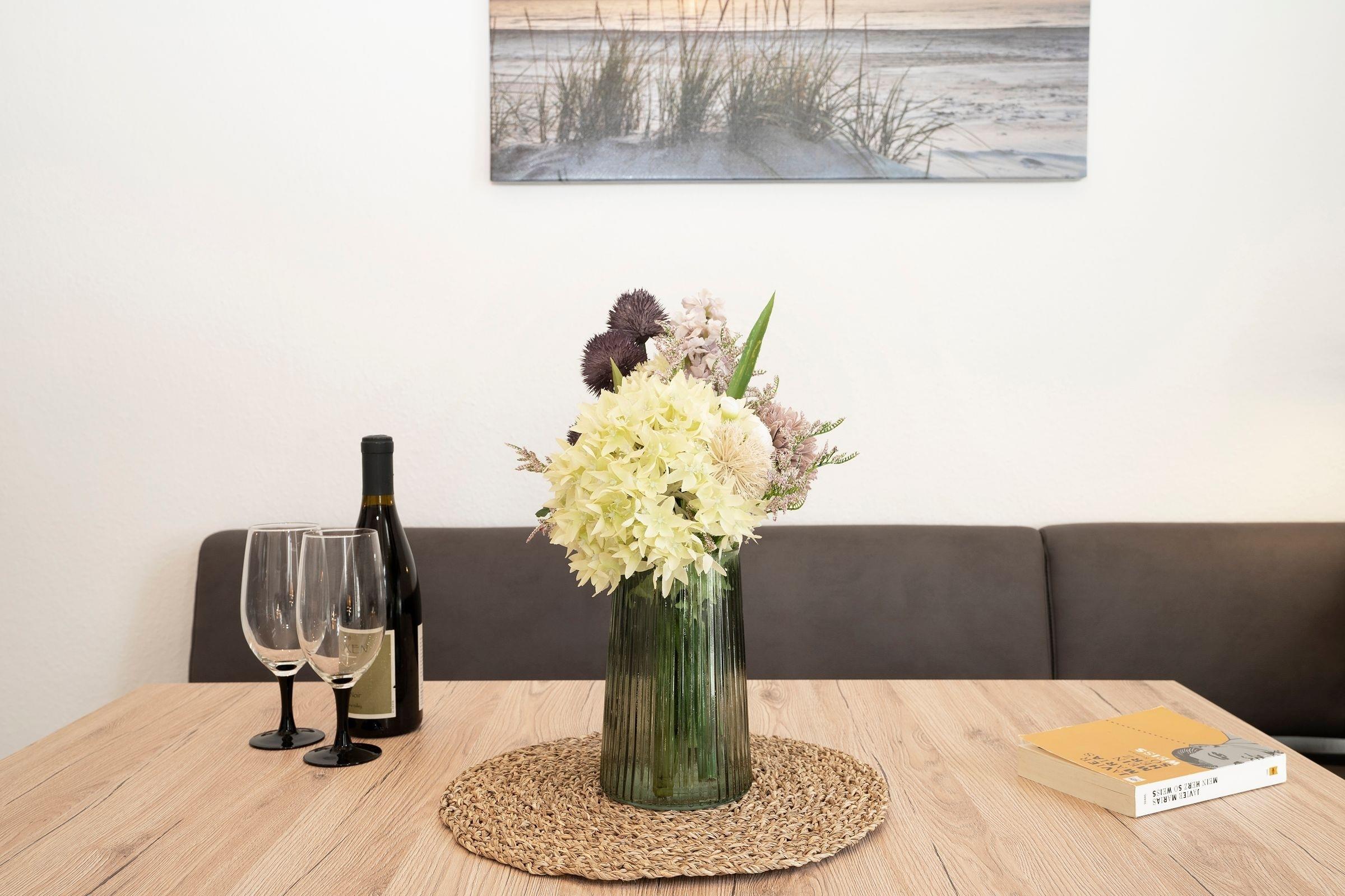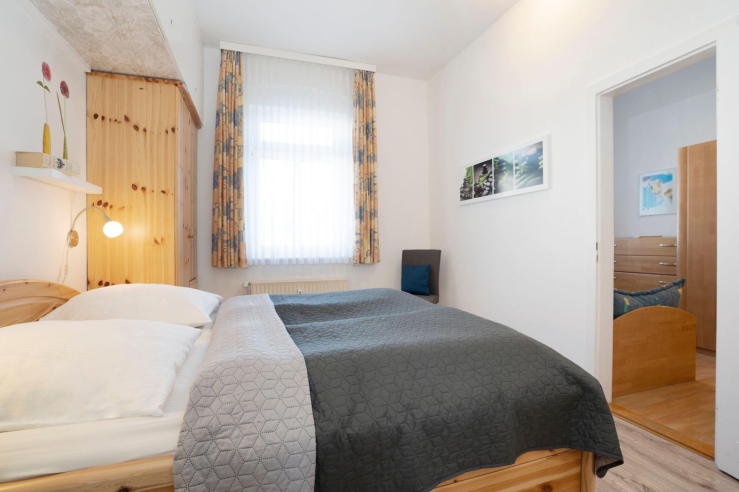 Lichtdurchflutete 3-Zimmer-Ferienwohnung im 1. Stock für bis zu 3 Personen mit 2 separaten Schlafzimmern, Balkon und einer Wohnfläche von ca. 55 m².