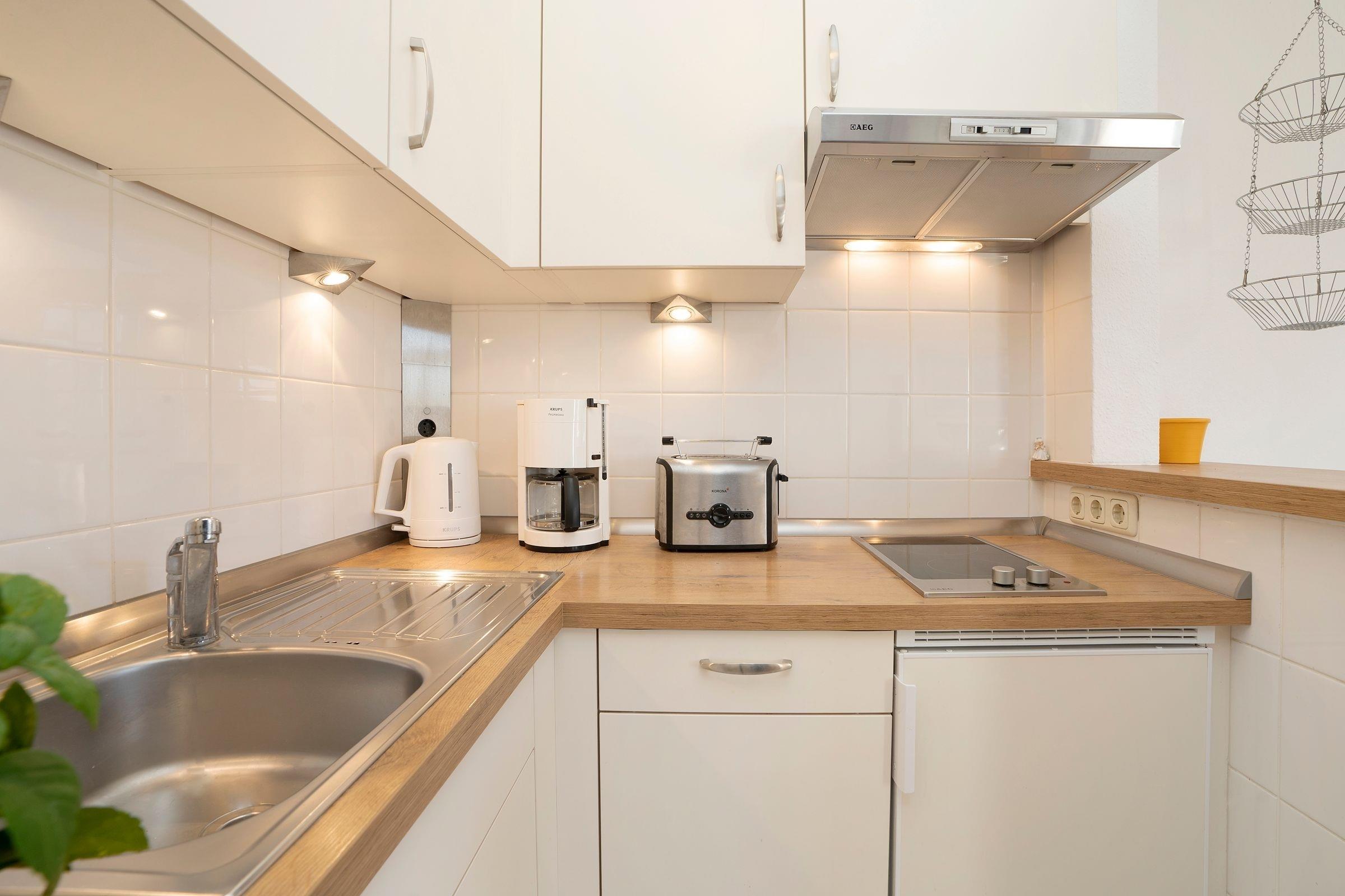 Herzlich Willkommen – ein unvergesslicher Urlaub an der Ostsee wartet auf Sie. Die moderne Ferienwohnung befindet sich in der gepflegten Wohnanlage Villa Hoffnung und empfängt Sie mit einem lichtdurchflutetet Wohn-/Ess-Bereich. Eine großzügige Polster-Garnitur mit Dreisitzer, Zweisitzer und einem Sessel lädt zu gemütlichen Abenden ein. Hier kann man sich wunderbar gegenübersitzen und gute Gespräche führen. Im hinteren Bereich befindet sich eine schicke Ess-Ecke, hinter der Sie den möblierten Süd-Balkon betreten können. Genießen Sie hier die Sonne und Ihre verdiente Ostsee-Zeit. Wie wäre es mit einem Glas Wein und einem spannenden Buch? Die offene moderne Küche mit Geschirrspüler ist in den Wohnbereich integriert. Ein kleiner Tresen dient als Raumteiler und sorgt für eine gemütliche Atmosphäre. Die gute Ausstattung der Küche wird jeden Hobby-Koch zum Lächeln bringen. Herrliche Nächte verbringen Sie in den beiden Schlafräumen: Ein Zimmer verfügt über ein bequemes Doppelbett (ca. 2x 80x200 cm), im zweiten Zimmer steht ein Einzelbett (ca. 90x200 cm) zur Verfügung. Zum Verdunkeln der Schlafräume sind Rollläden vorhanden. Das helle und freundliche Duschbad garantiert einen guten Start in den Tag.