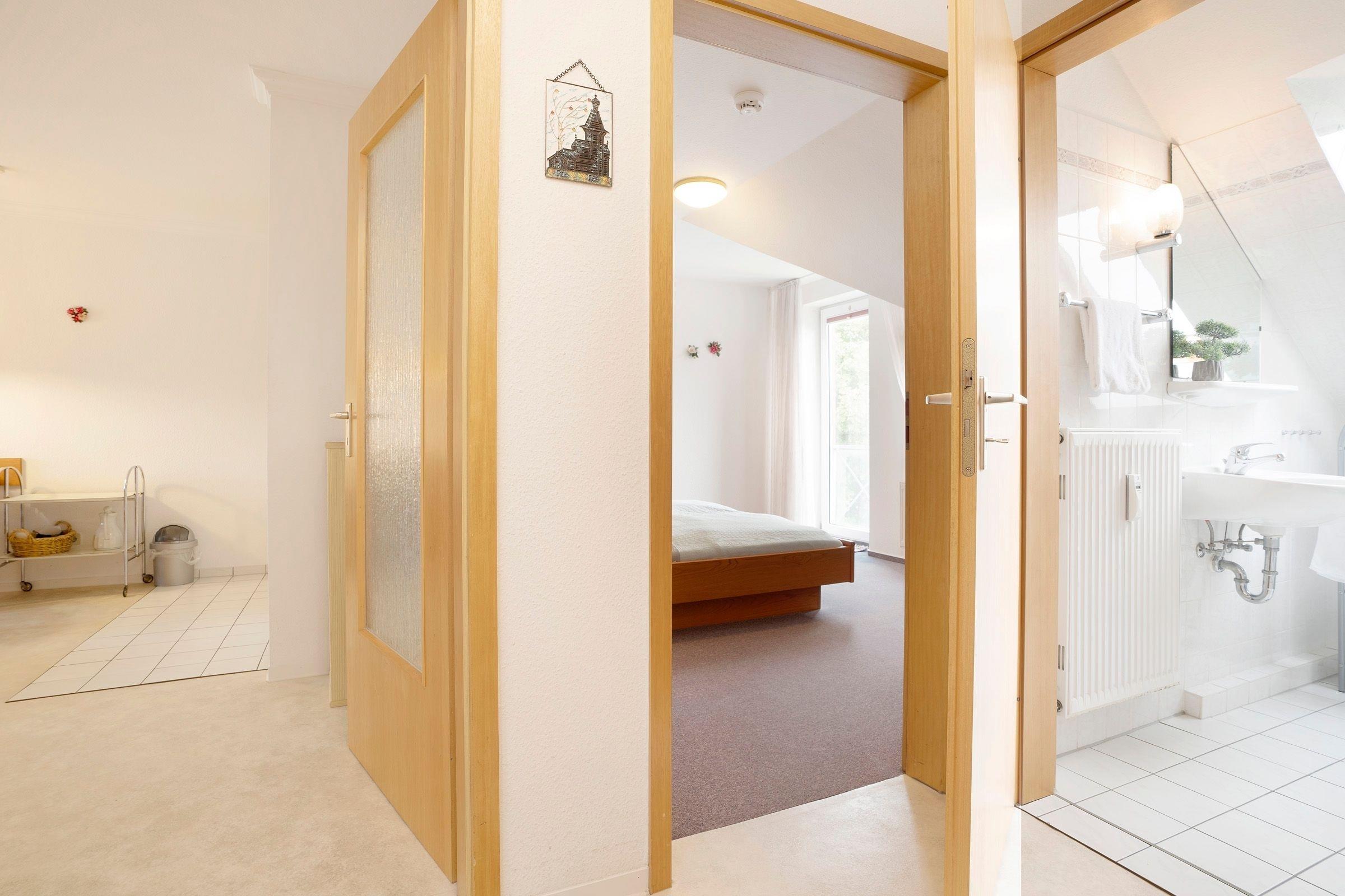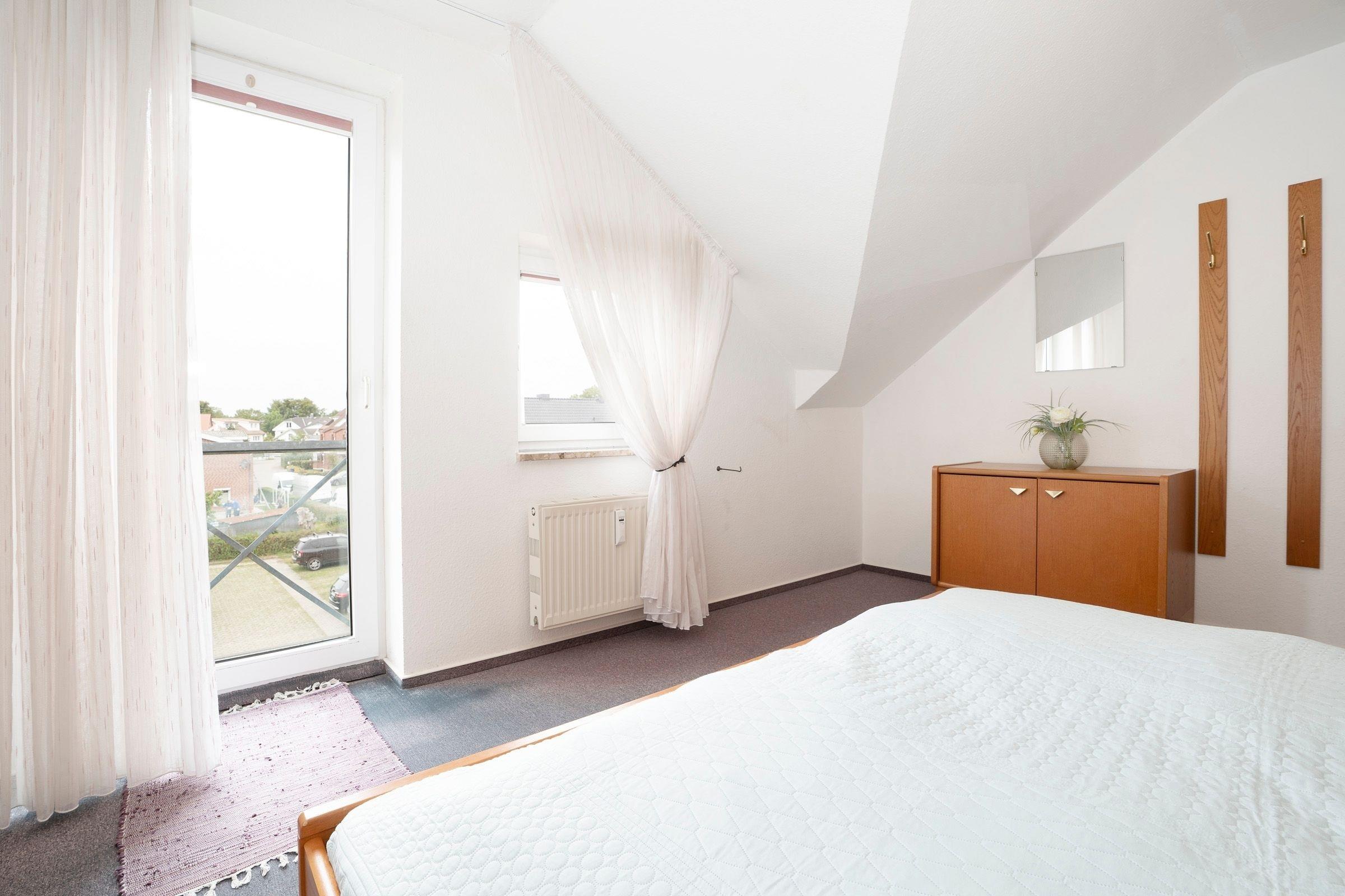 Erleben Sie ein wunderbares Wohngefühl – dem Meer so nah. Nur rund 65 Meter entfernt von dieser Ferienunterkunft befindet sich der schöne Ostseestrand. Aber kommen Sie erst einmal herein: Der lichtdurchflutete Wohn/Essbereich empfängt Sie mit einer kuscheligen Polstergarnitur vor dem TV-Gerät. Nehmen Sie Platz und genießen Sie Ihre Auszeit. Auch der möblierte Balkon lädt zum Verweilen ein. Saisonal bedingt haben Sie von hier aus einen Teilmeerblick. Aber auch so wird der Balkon sicher Ihr neuer Lieblingsplatz. Denn bei fast jedem Wetter sitzen Sie hier gut geschützt und gemütlich und können die Ostseeluft schnuppern. Wie wäre es hier abends mit einem Glas Wein? Die Küche ist in den Wohnbereich integriert und bietet eine gute Ausstattung. Hier finden Sie alles, was Sie im Urlaub zum Zubereiten Ihrer Speisen brauchen. Nach einem erholsamen Tag haben Sie mehrere Möglichkeiten, die Nachtruhe zu genießen: Zum einen lassen sich im Wohnbereich 2 Schrankbetten (2x 90x200 cm) ausklappen. Zum anderen steht im separaten Schlafzimmer ein Doppelbett (2x 90x200 cm). Die Dachschrägen schenken dem Raum eine besondere Gemütlichkeit. Das gepflegte Duschbad mit Dachfenster ist hell gefliest.