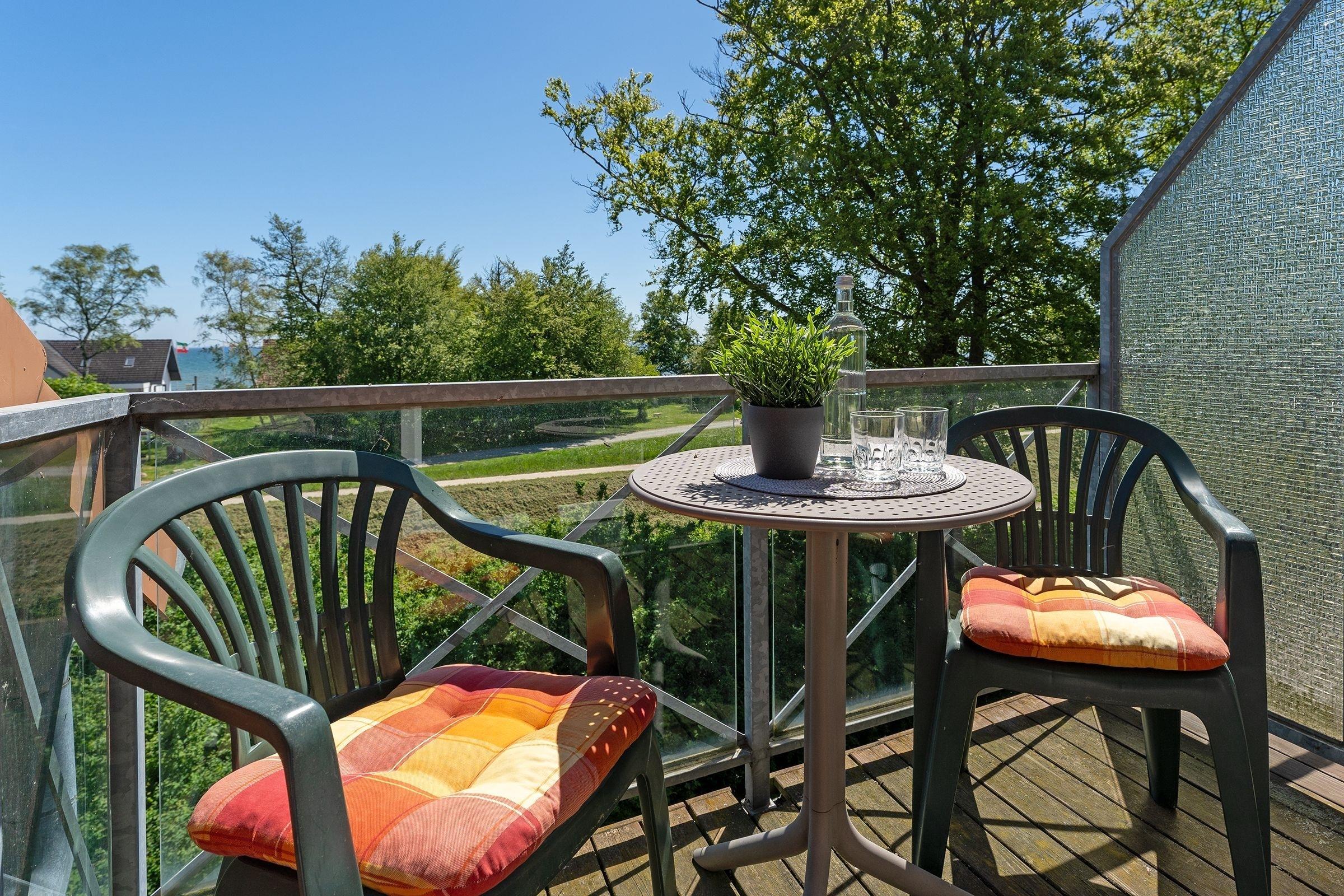 Helle 2-Zimmer-Ferienwohnung mit Balkon und Meerblick, nur 65 Meter vom Ostseestrand in Kellenhusen entfernt.