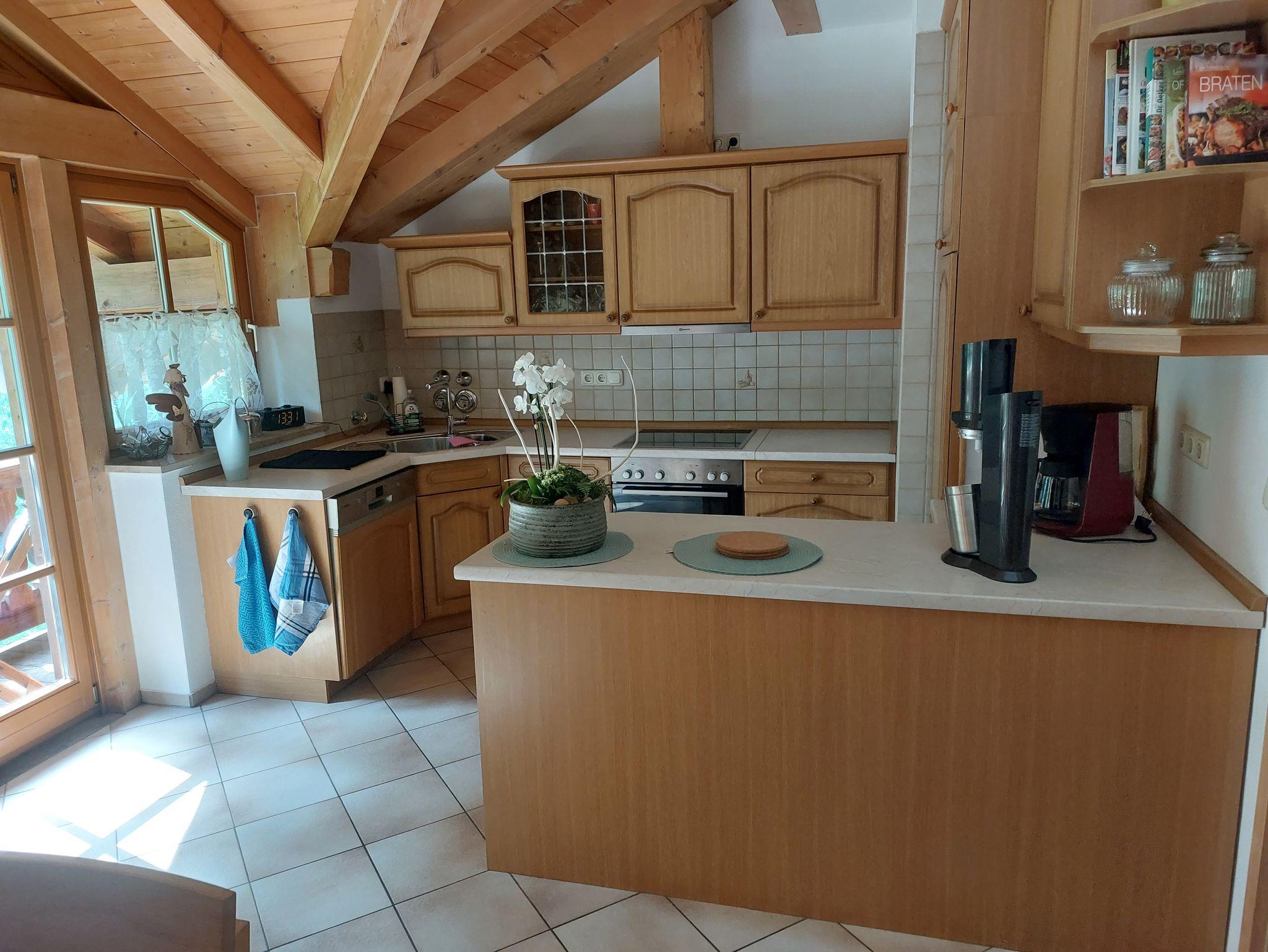 Die im Jahr XXXXXX renovierte „Ferienwohnung im Brechstubenweg“ befindet sich etwas außerhalb von Kiefersfelden in Hanglage mit Blick auf ein malerisches Panorama. Sie bietet im 1.OG auf 95 qm ausreichend Platz für 4 Personen in zwei Schlafzimmern und einer Schlafcouch im Wohnzimmer für eine 5. Person. In der Ferienwohnung erwarten Sie ein Flachbild-Sat-TV, zwei Balkone, eine komplett ausgestattete Küche, ein Waschtrockner, kostenfreies WLAN und ein kostenfreier Parkplatz. Im Wohnzimmer steht ein Kaminofen zur Verfügung, der in den Wintermonaten für behagliche Wärme sorgt. Ein Aufbewahrungsraum für Ski wird kostenfrei zur Verfügung gestellt.
