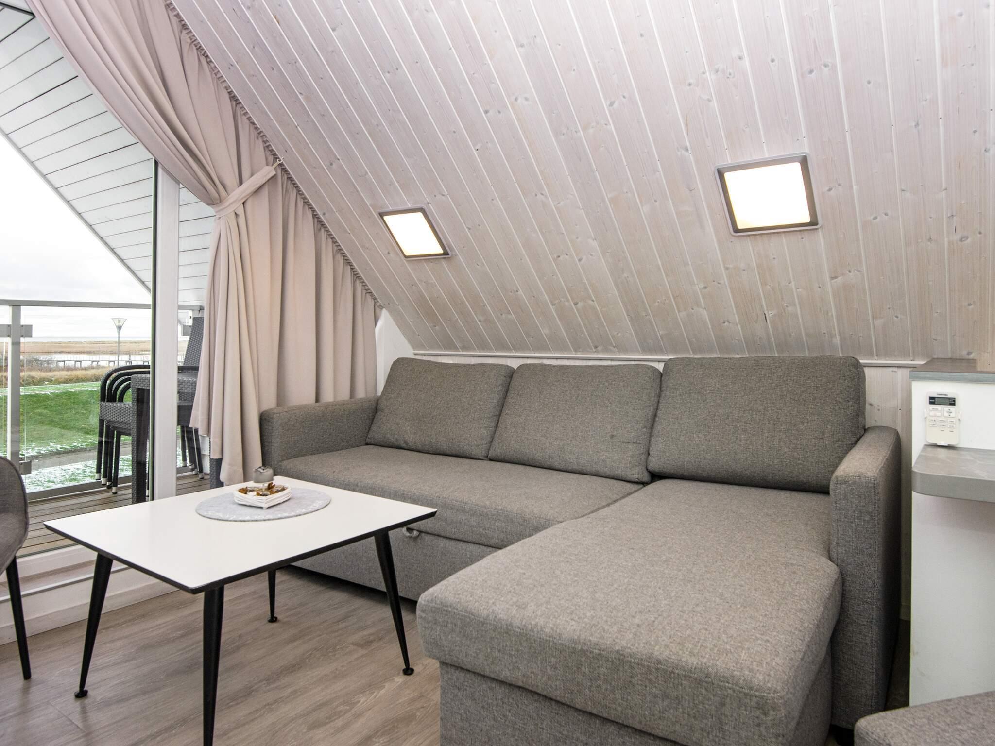 Der kombinierte Küchen-/Aufenthaltsbereich befindet sich im 1. Stock, von wo aus Sie einen herrlichen Blick auf das Meer und die Umgebung haben. Hier erwartet Sie auch eine Loggia, wo Sie laue Sommerabende und den Panoramablick auf den Deich und den dahinter liegenden Strand genießen können. Nutzen Sie das Fernglas, um den Schiffsverkehr und die herrliche Natur zu beobachten.