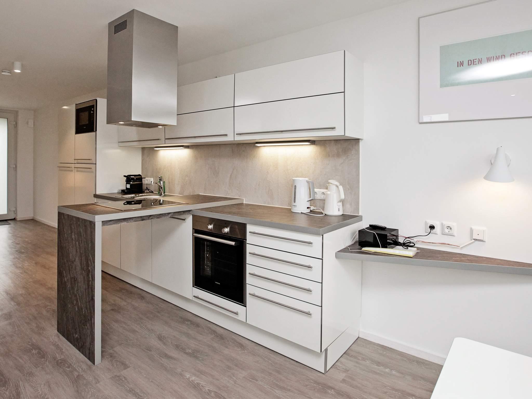 Lassen Sie sich von der maritimen Atmosphäre einnehmen, wenn Sie am Hafen flanieren, oder genießen Sie die Abendstimmung auf Ihrer Terrasse, sofern Sie es nicht bevorzugen die Aussicht vom Wohnzimmer aus zu erleben, während die Flammen des Bio-Kamins Wärme, Gemütlichkeit und Ferienstimmung verbreiten. Die Einrichtung kann variieren, u.a. gibt es unterschiedliche Typen von Kaffeemaschinen in den Häusern.