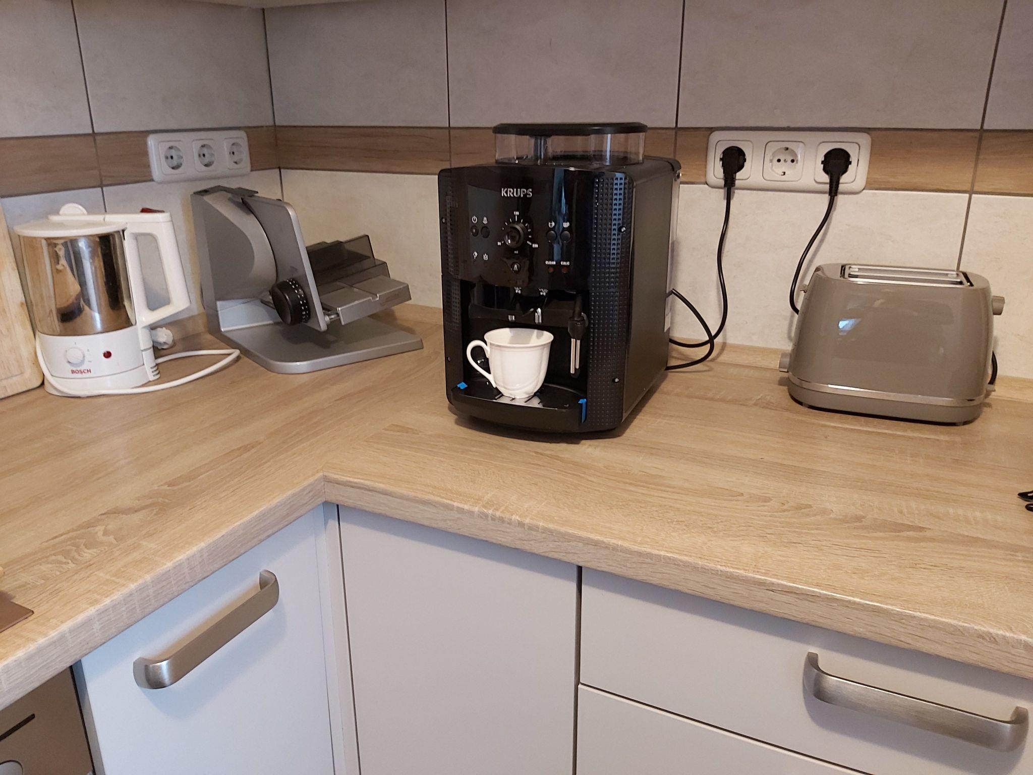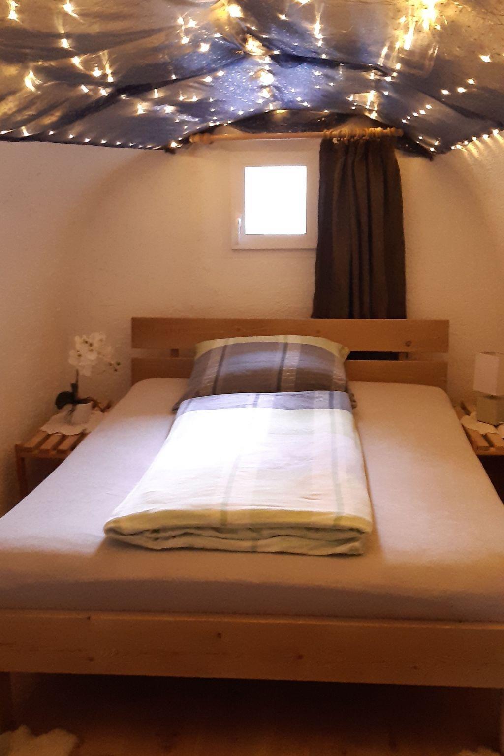 Innen bietet unsere ca. 60 m² große Ferienwohnung alles, was das Herz begehrt. Sie ist perfekt auf die Bedürfnisse von 1-2 Erwachsenen, optional mit einem Kleinkind bis 3 Jahre, ausgerichtet, bietet jedoch durch die komfortable Schlafcouch im Wohnzimmer und das abenteuerliche „Hobbit“-Zimmer für die Kleinen bis 12 Jahre, Platz für bis zu vier Personen. Die Wohnung verfügt über ein geräumiges Schlafzimmer mit einem 1,80 x 2,00 m großen Doppelbett, eine gemütliche Wohnstube mit Essecke, eine vollausgestattete Küche sowie ein herrliches Badezimmer, das im Morgenlicht erstrahlt und eine große Badewanne neben einer separaten Dusche bietet.