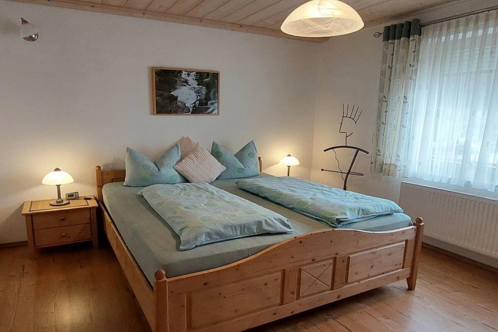 Unser Ferienhaus mit 2 Ferienwohnungen ( 4 Sterne) und einem Doppelzimmer liegt direkt am Waldrand mit unverbauter Aussicht in der Ferienregion Nationalpark Bayerischer Wald. Der Parkplatz befindet sich direkt beim Haus und Sie können von dort ebenerdig in die Ferienwohnung gehen. Die Ferienwohnung ist bestens ausgestattet und Sie finder hier viele Annehmlichkeiten. Die Küche ist ganz neu , komfortabel und bestens ausgestattet. Die Matratzen beider Schlafzimmer sind ebenfalls neu und hochwertig. Der Essplatz und das große Sofa im Wohnzimmer bieten reichlich Platz für 4 Personen. Zu dieser Fewo gehören 2 Balkone mit Sitzplatz. Außerdem Bad/Dusche/WC sowie ein zweites separates WC