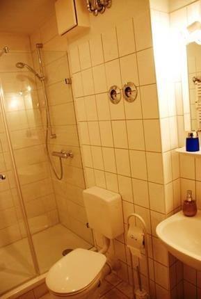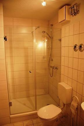 Das separate Badezimmer ist mit einer großzügigen Dusche, Waschtisch und WC ausgestattet.