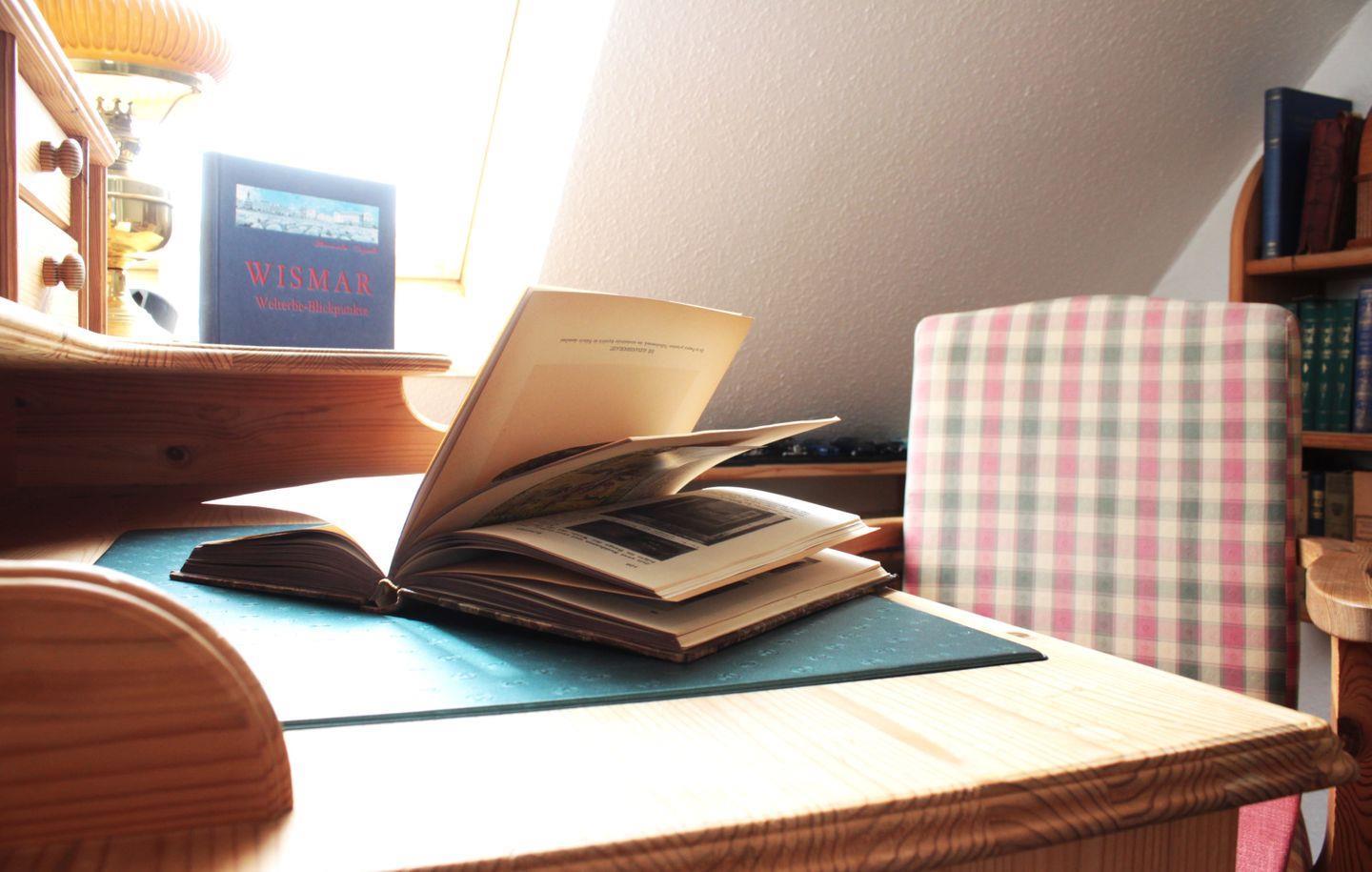 Im Wohnbereich befindet sich außerdem der Zugang zum möblierten Balkon, von dem Sie einen unverbauten Blick auf den Hafen, die Wismarbucht und die Inselkirche haben.