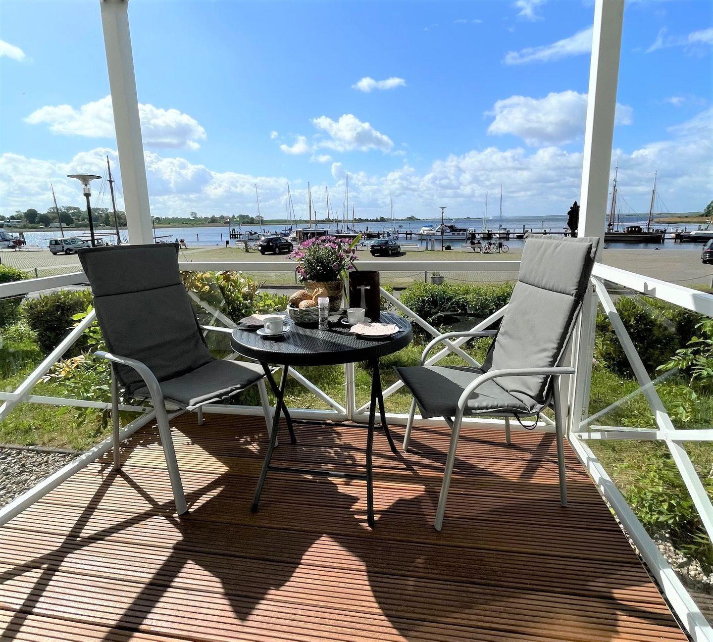 In dieser geschmackvoll eingerichteten Zwei-Zimmer-Ferienwohnung können sich bis zu 3 Personen auf ca. 48qm Wohnfläche sehr wohlfühlen. Die Wohnung befindet sich im Erdgeschoss eines Mehrfamilienhauses und bietet mit seinem überdachten Balkon einen erstklassigen Blick auf den Hafen und die Wismarbucht von Kirchdorf.