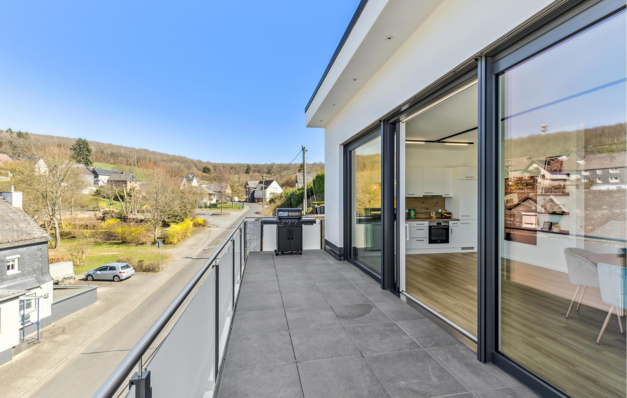 Verlagern Sie Ihr Leben nach draußen. Nehmen Sie Platz auf dem großzügigen Balkon mit Loungemöbeln und Sonnenschirm. Genießen Sie die Aussicht auf das Umland und starten Sie den Tag mit einem Frühstück an der frischen Luft oder lassen Sie den Abend mit einem Glas Wein ausklingen.