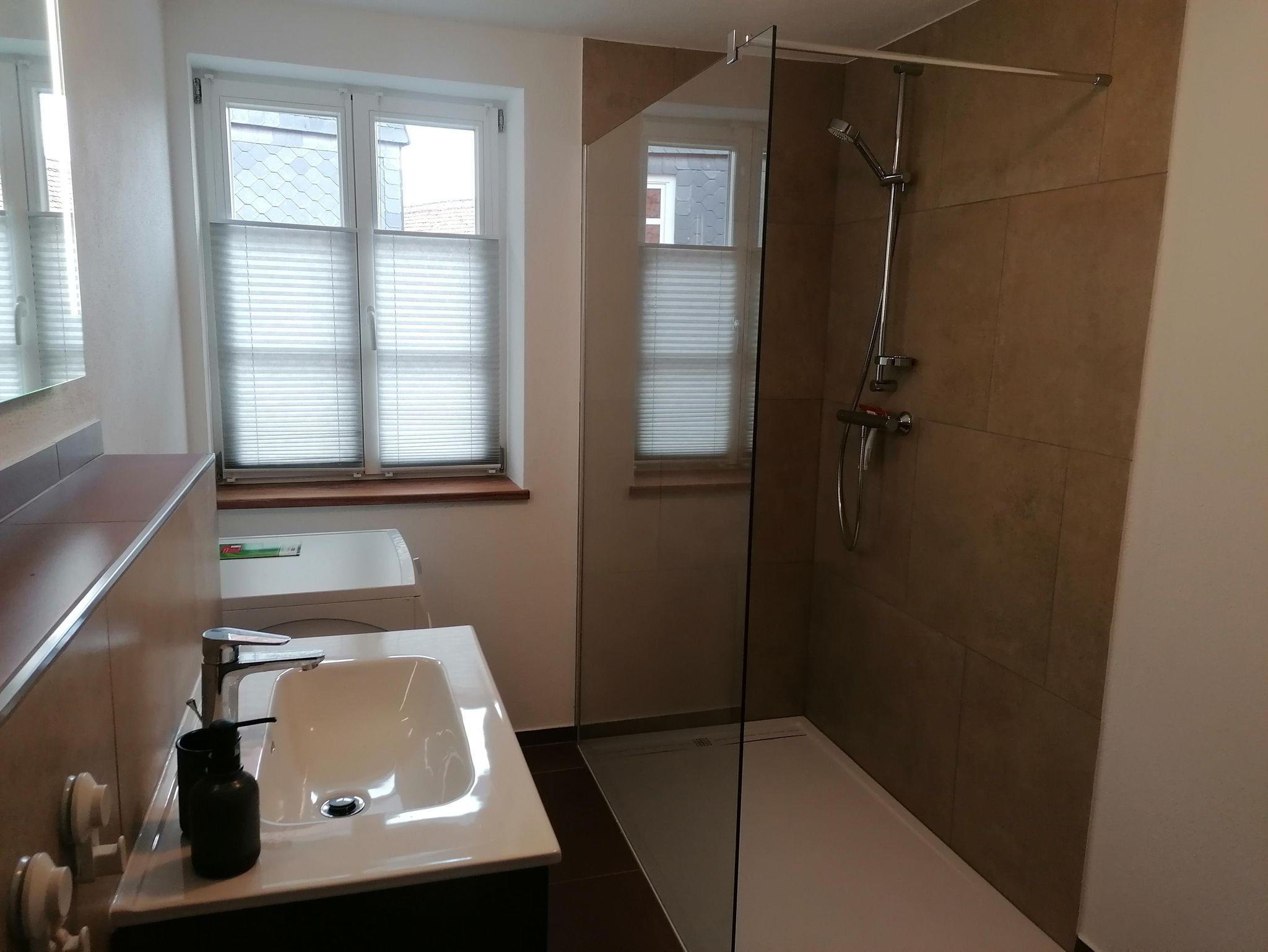 Denkmalgeschützter Vierseitenhof von 1860 mitten in Großseelheim, 2 Ferienwohnungen (65 bzw. 55 qm) mit jeweils einer Galerie (60 bzw. 40 qm), die über den ehemaligen Stallungen neu gebaut und 2023 vollendet wurden. Die Stallungen wurden zu Eingangsbereichen und einem Technikraum umgebaut. Die Beheizung erfolgt über eine Wärmepumpe mit Fussbodenheizung und Photovoltaik.