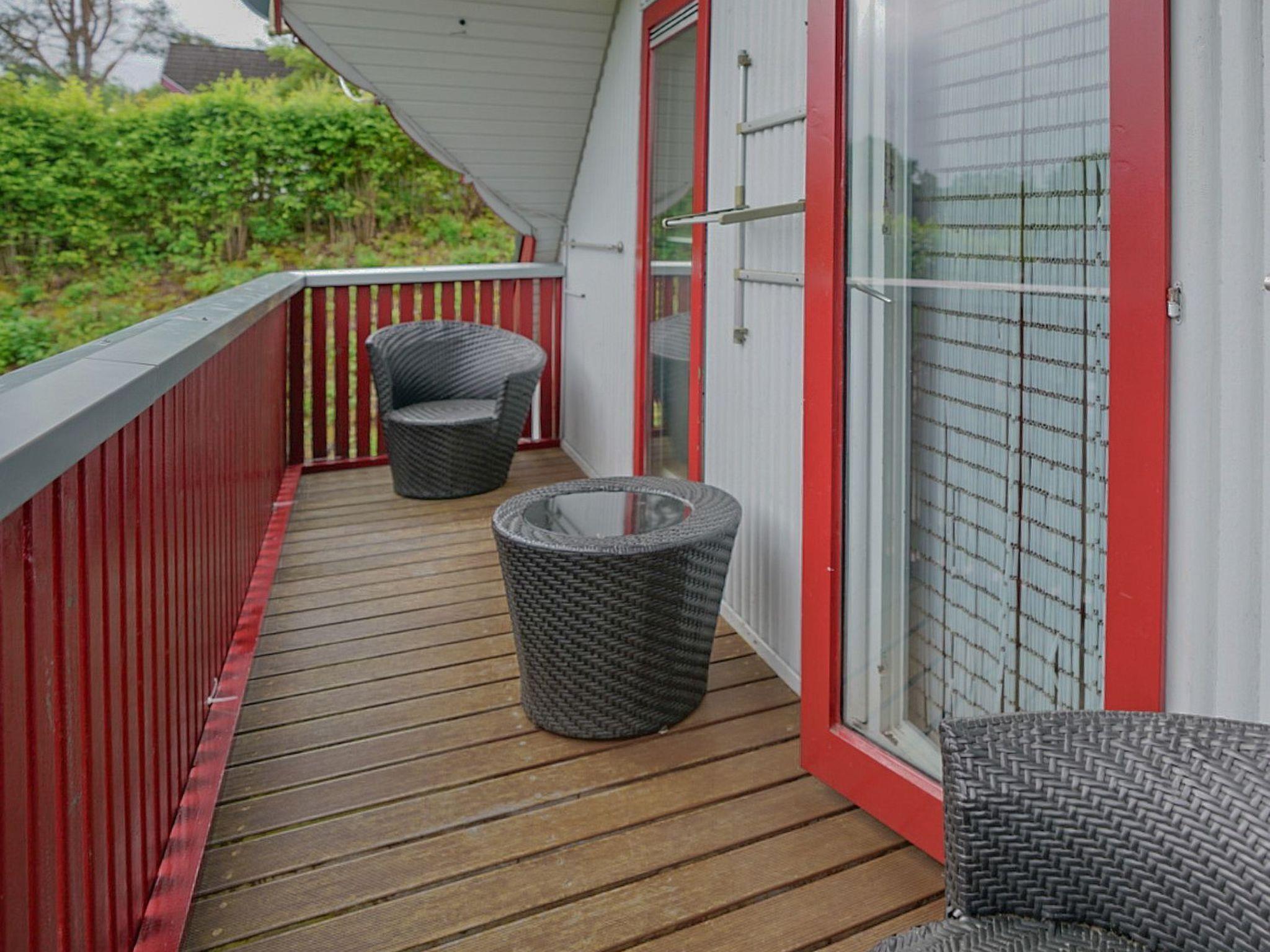 Der gepflegte Außenbereich bietet mit seiner Terrasse im Erdgeschoss und einem weitläufigen Balkon im Obergeschoss, jeweils mit Blick auf den umliegenden Ferienpark, ideale Bedingungen für entspannte Stunden im Freien. Die direkten Balkonzugänge von den Schlafzimmern zur Südseite hin sowie gemütliche Gartenmöbel unterstreichen das Gefühl von Freiheit und Offenheit und laden zum Verweilen und Genießen ein.