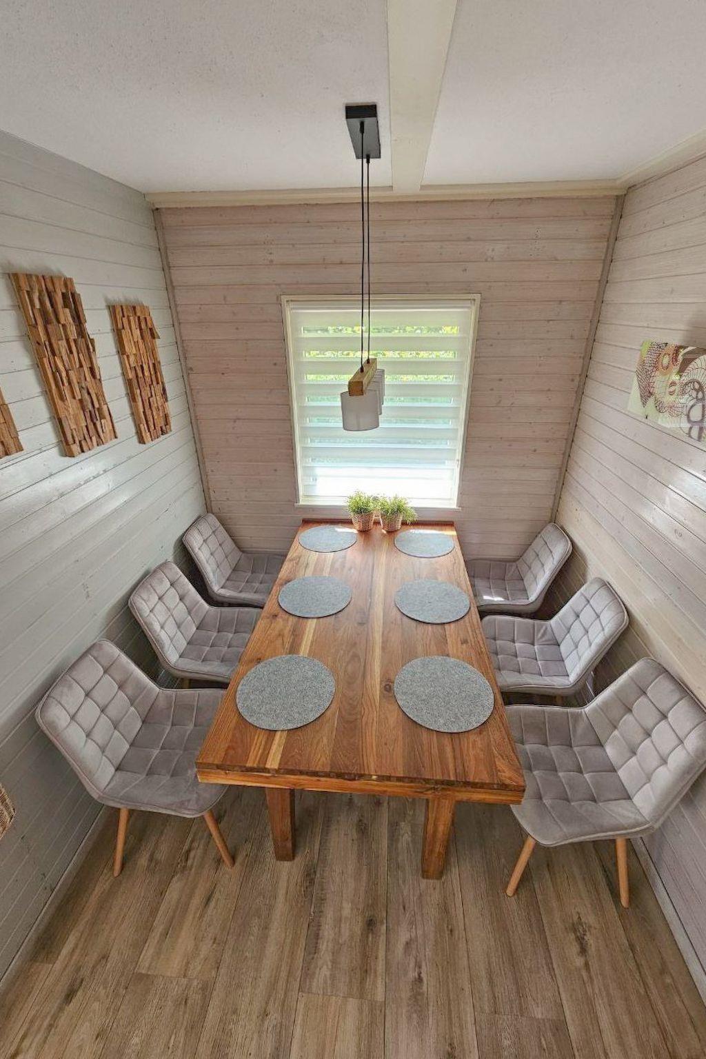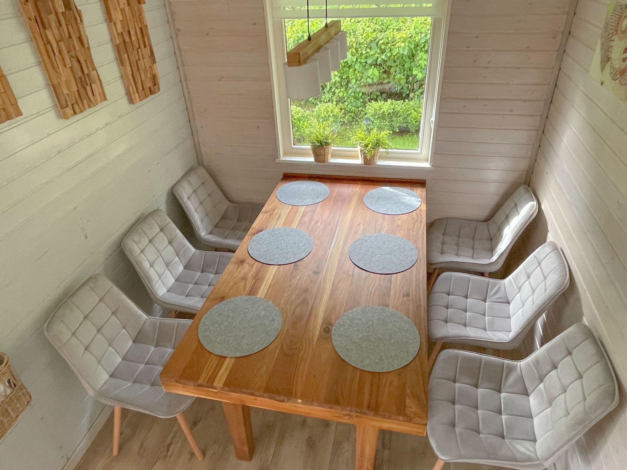 Im Inneren begeistert das sehr gepflegte Ferienhaus mit einer geschmackvollen Einrichtung, die ein sofortiges Wohlgefühl garantiert. Neben drei einladenden Schlafzimmern, die komfortable Schlafgelegenheiten für die ganze Familie bereithalten, erwartet Sie ein großzügiger Wohnbereich mit Kamin. Die moderne Ausstattung umfasst ein Klimagerät für alle Jahreszeiten, eine neu eingebaute Küche sowie einen smarten Fernseher, was Ihren Aufenthalt sowohl gemütlich als auch unterhaltsam macht. Ob in der anspruchsvollen Empore mit Küche, Bad und Gäste-WC oder in den liebevoll dekorierten Schlafräumen – hier finden Sie stilvolle Gemütlichkeit, die zu Herzen geht.