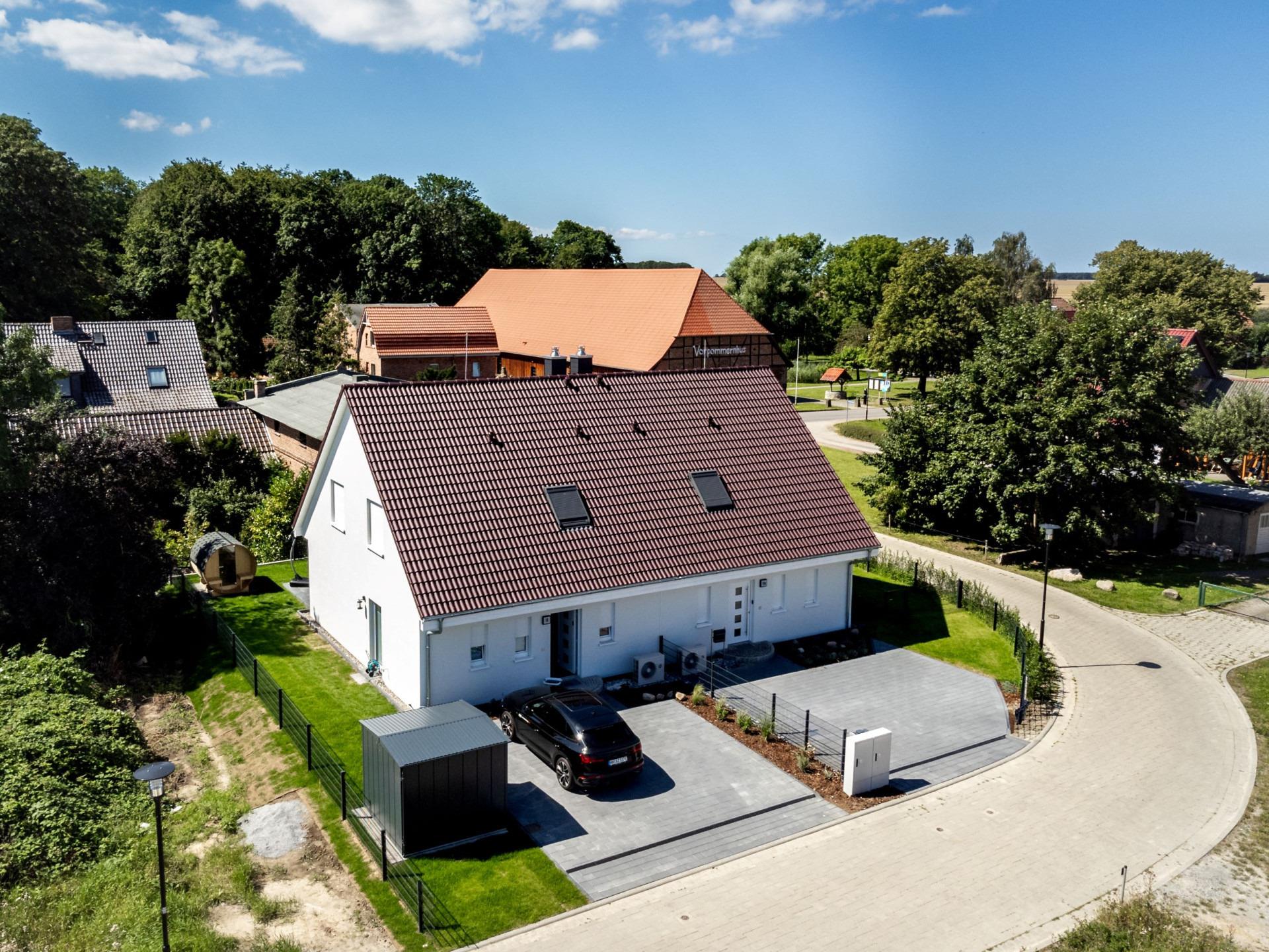 Die Doppelhaushälfte befindet sich im staatlich anerkannten Erholungsort Klausdorf, in einer verkehrsberuhigten Zone mit einer Höchstgeschwindigkeit von 10 km/h, was für eine ruhige und sichere Umgebung sorgt.