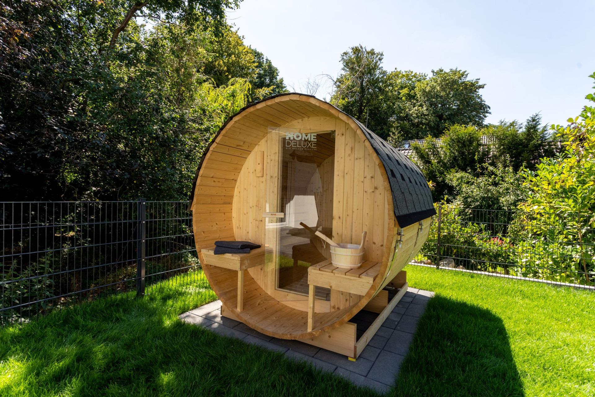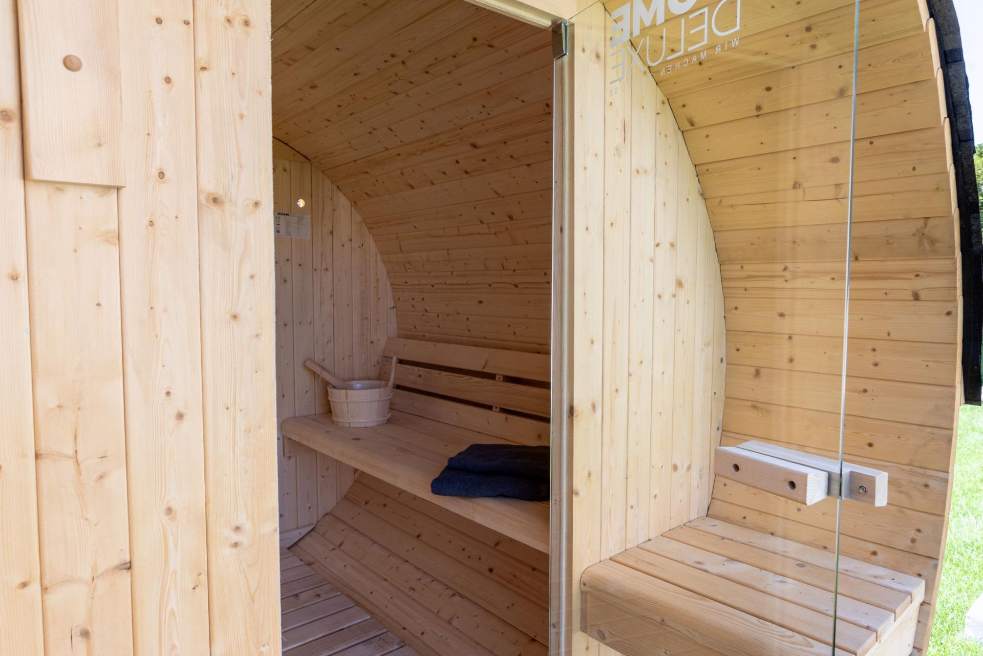 Eine Fasssauna sorgt für noch mehr Entspannung.
