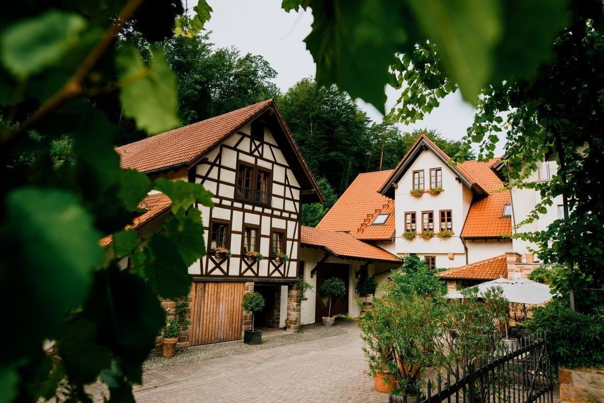 Wunderschön gelegen direkt an der Südlichen Weinstraße liegt das Kleinod Klingenmünster. In Traumlage direkt unterhalb der Burg Landeck liegt unser biologisch geführtes Weingut. Drei Generationen bewirtschaften die Rebfläche zu 100 % BIO . Im alten Fachwerkhaus, zentral im Gutshof gelegen, finden Sie unsere stillvoll renovierte Ferienwohnung. Natürliche Materialien, wie Kalk- und Lehmputze, Kalkfarben und Eichendielen, bereiten ein wunderbares Raumklima. Hinter dem Haus gurgelt ein kleines Bächlein, die frische Waldluft wird vom Vogelgezwitscher erfüllt. Eine alte Stiege führt direkt vom Gutshof bis zur besten Weinlage , dem Kirchberg. Direkt am Haus liegen wunderbare Rad- und Wanderwege. Auch der Aufstieg zur Burg beginnt vor der Tür.