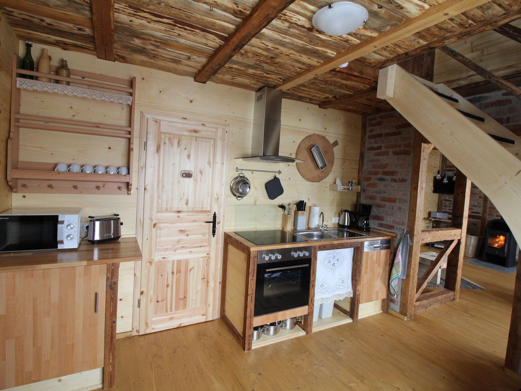 Wir haben dieses Gebäude selbst in vielen Stunden komplett saniert und zu einem gemütlichen Feriendomizil umgebaut. Die vorwiegend verwendeten Naturmaterialien (Holz, Naturstein) verleihen dem Haus eine einzigartige Gemütlichkeit. Es wurde jedoch nicht auf den modernen Standard verzichtet. Die Ferienhaushälfte befindet sich in der linken Seite des Hauses. Sie ist komfortabel ausgestattet und bietet 4 Personen ausreichend Platz. Es verfügt über 1 Bad, 1 Küche, 1 Wohn,- Esszimmer, 1 abgeschlossenes Schlafzimmer und 1 offenes Schlafzimmer. Am Kaminfeuer können die Gäste ihren Urlaub genießen. Auch im Außenbereich kann man auf der großzügigen Terrasse seinen Urlaub genießen. Kostenfreie Parklätze stehen an der Unterkunft zur Verfügung.