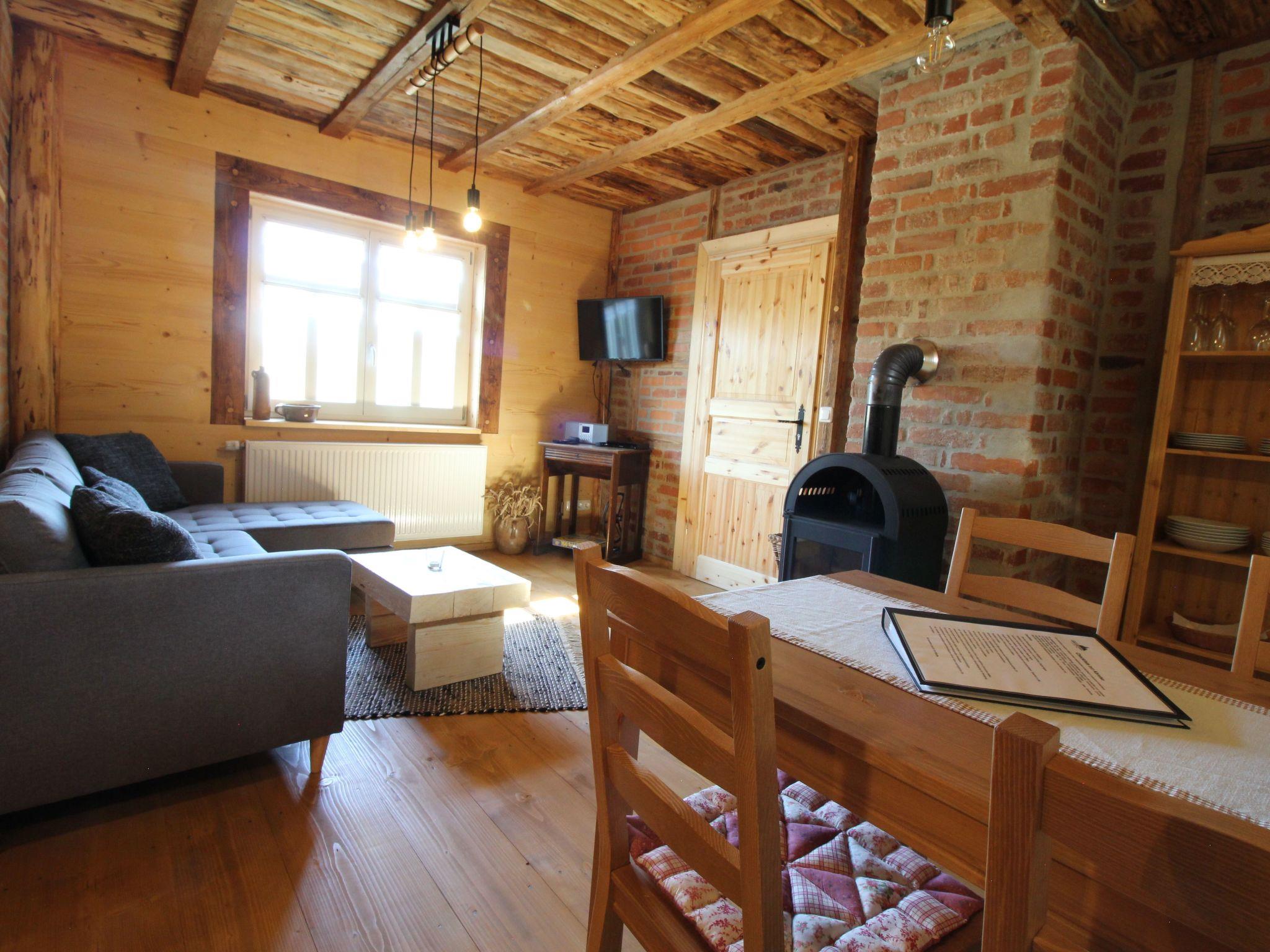 Wir haben dieses Gebäude selbst in vielen Stunden komplett saniert und zu einem gemütlichen Feriendomizil umgebaut. Die vorwiegend verwendeten Naturmaterialien (Holz, Naturstein) verleihen dem Haus eine einzigartige Gemütlichkeit. Es wurde jedoch nicht auf den modernen Standard verzichtet. Die Ferienhaushälfte befindet sich in der rechten Seite des Hauses. Sie ist komfortabel ausgestattet und bietet 4 Personen ausreichend Platz. Es verfügt über 1 Bad, 1 Küche, 1 Wohn,- Esszimmer, 1 abgeschlossenes Schlafzimmer mit einem Doppelbett und einem Einzelbett. Ein weiteres Einzelbett steht in dem offenen Schlafbereich, wenn man die Treppe hoch kommt. Am Kaminfeuer können die Gäste ihren Urlaub genießen. Auch im Außenbereich kann man auf der großzügigen Terrasse seinen Urlaub genießen. Kostenfreie Parklätze stehen an der Unterkunft zur Verfügung.