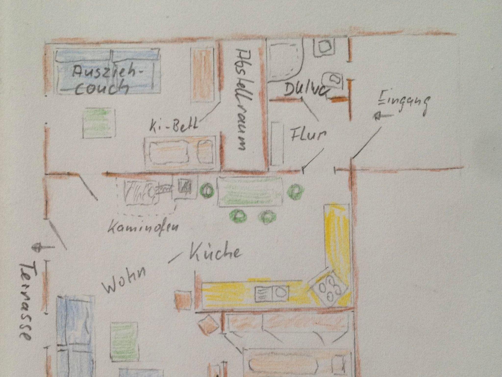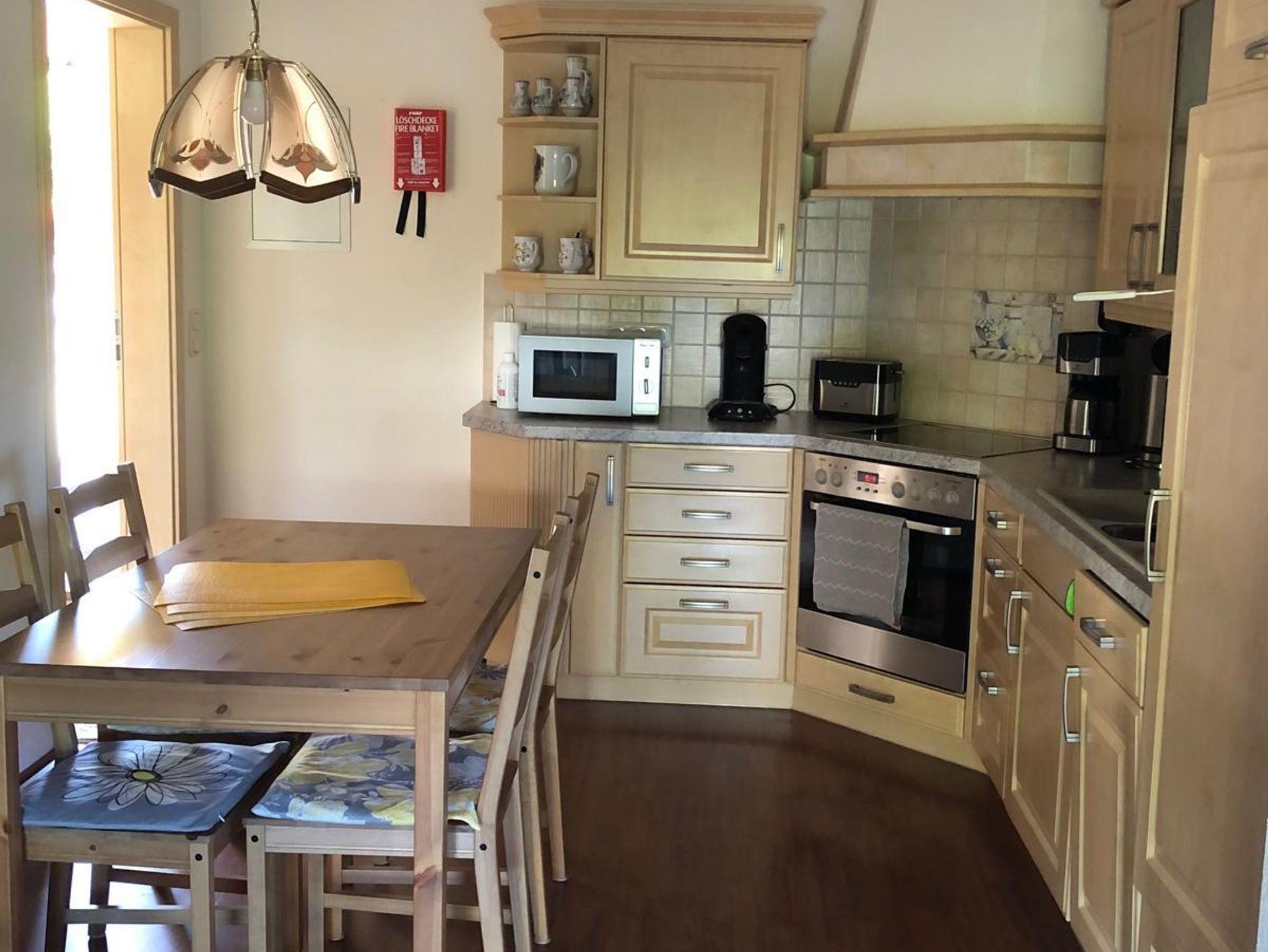 • Küchenbereich- Eßplatz für 4 Personen, komplette Einbauküche mit Gefrier-Kühlkombination, Spülmaschine, Herd (Ceran-Kochfeld), Backofen, Mikrowelle, Kaffemaschine und vielen nützlichen Küchenutensilien sowie einigen Kochbücher aus dem Vogtland