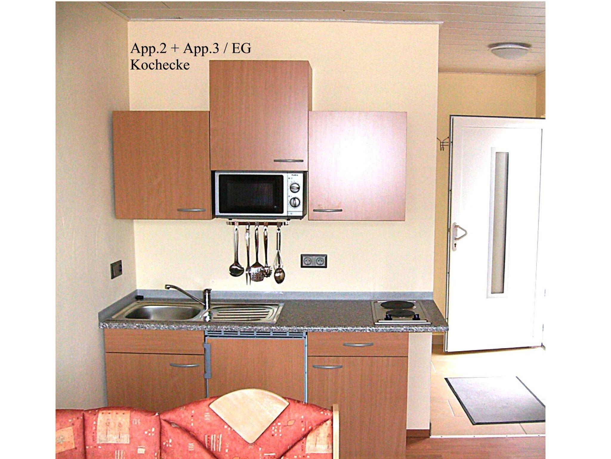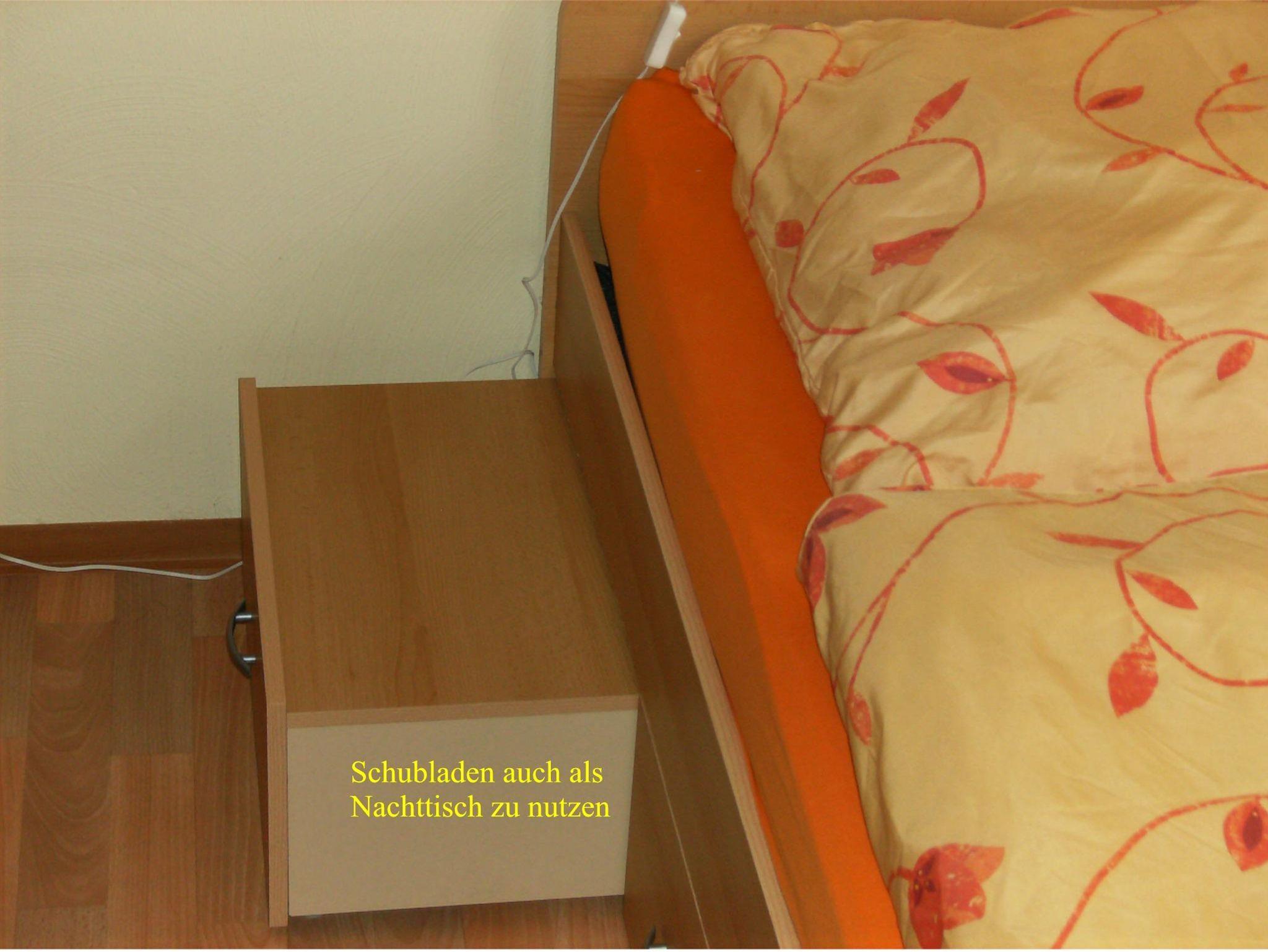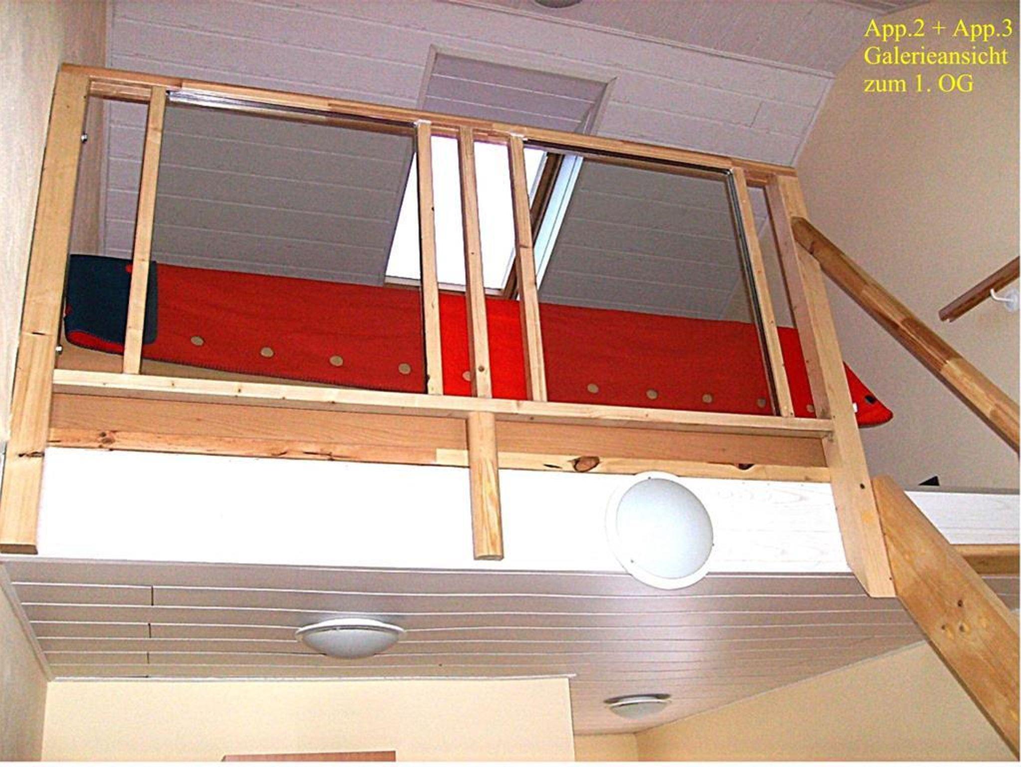 Nur App. 1 : Ein drittes Bett ist aufstellbar. Wir bieten hier ein Luftgästebett (203x103x46 cm) an, für Kleinkinder gibt es ein Kinderreisebett, ohne Zubehör. Ablagemöglichkeiten für die Kleidung ist im Schrank im EG oder im 1 OG fahrbarer Kleiderständer, sowie ein Stufenregal.