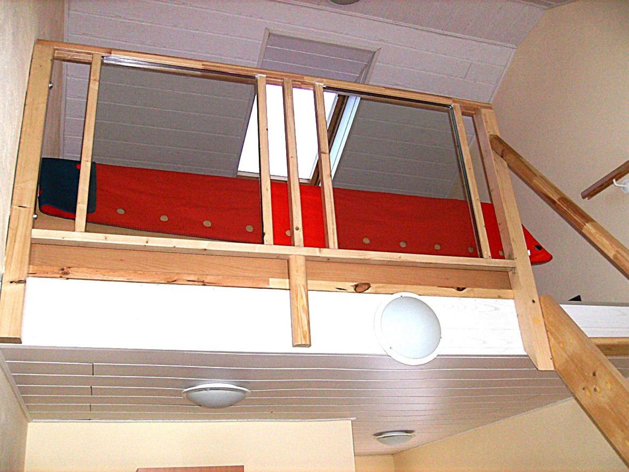 Eine Treppe führt in den oberen Stock, dort stehen die 2 Betten (90x200), die sowohl getrennt stehen können als auch zusammenschiebbar sind. Stumme Diener für die Ablage sind ebenfalls vorhanden.