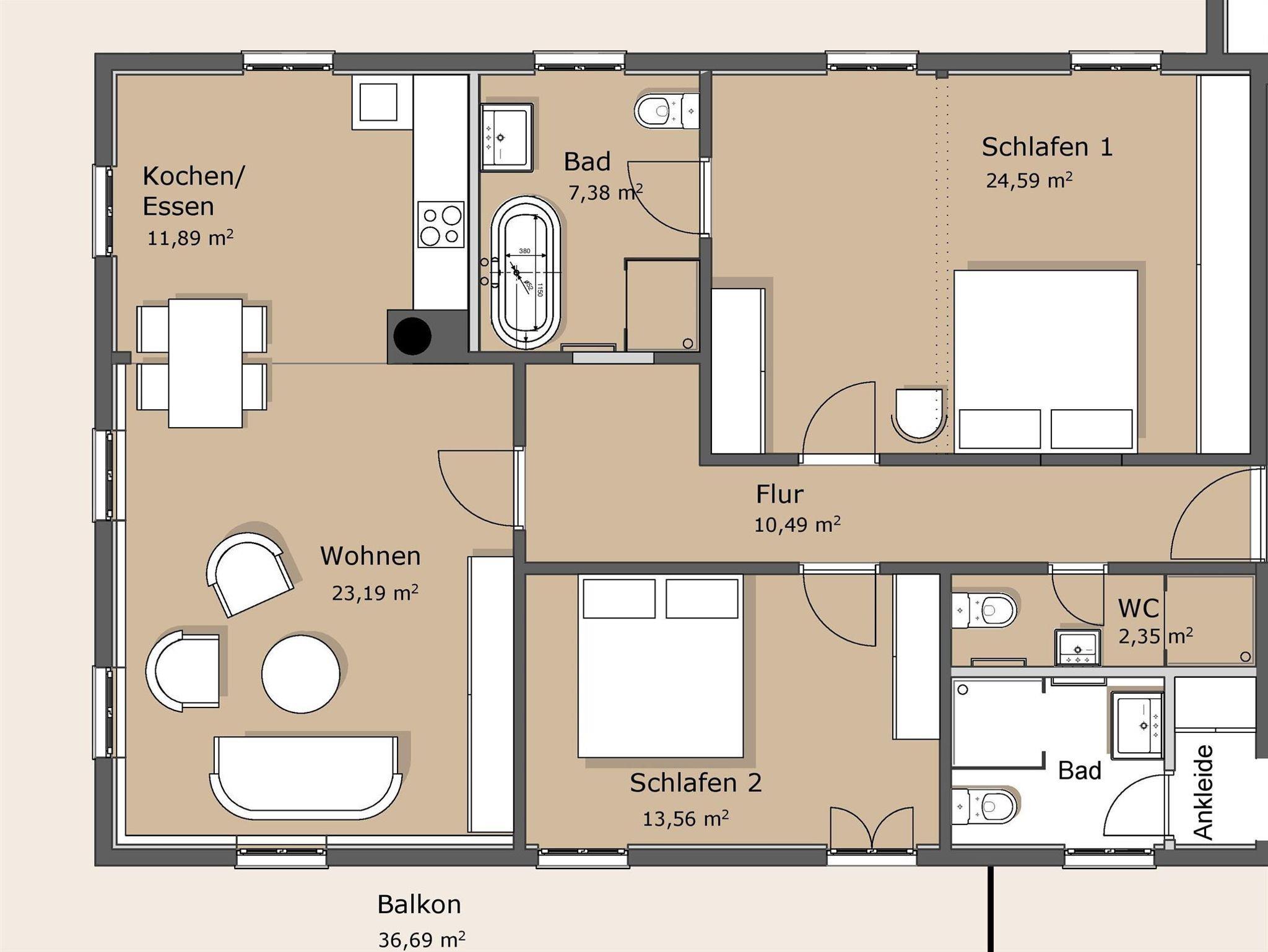 Die Ferienwohnung Alte Reben befindet sich im Herrenhaus, OG West, und verfügt über einen großzügigen Wohn-Ess-Kochbereich mit Einbauküche, Schlafzimmer mit Tageslichtbad en suite inkl. ebenerdiger Dusche und Badewanne, zweites Schlafzimmer und sep. WC mit Dusche, umlaufender Balkon.