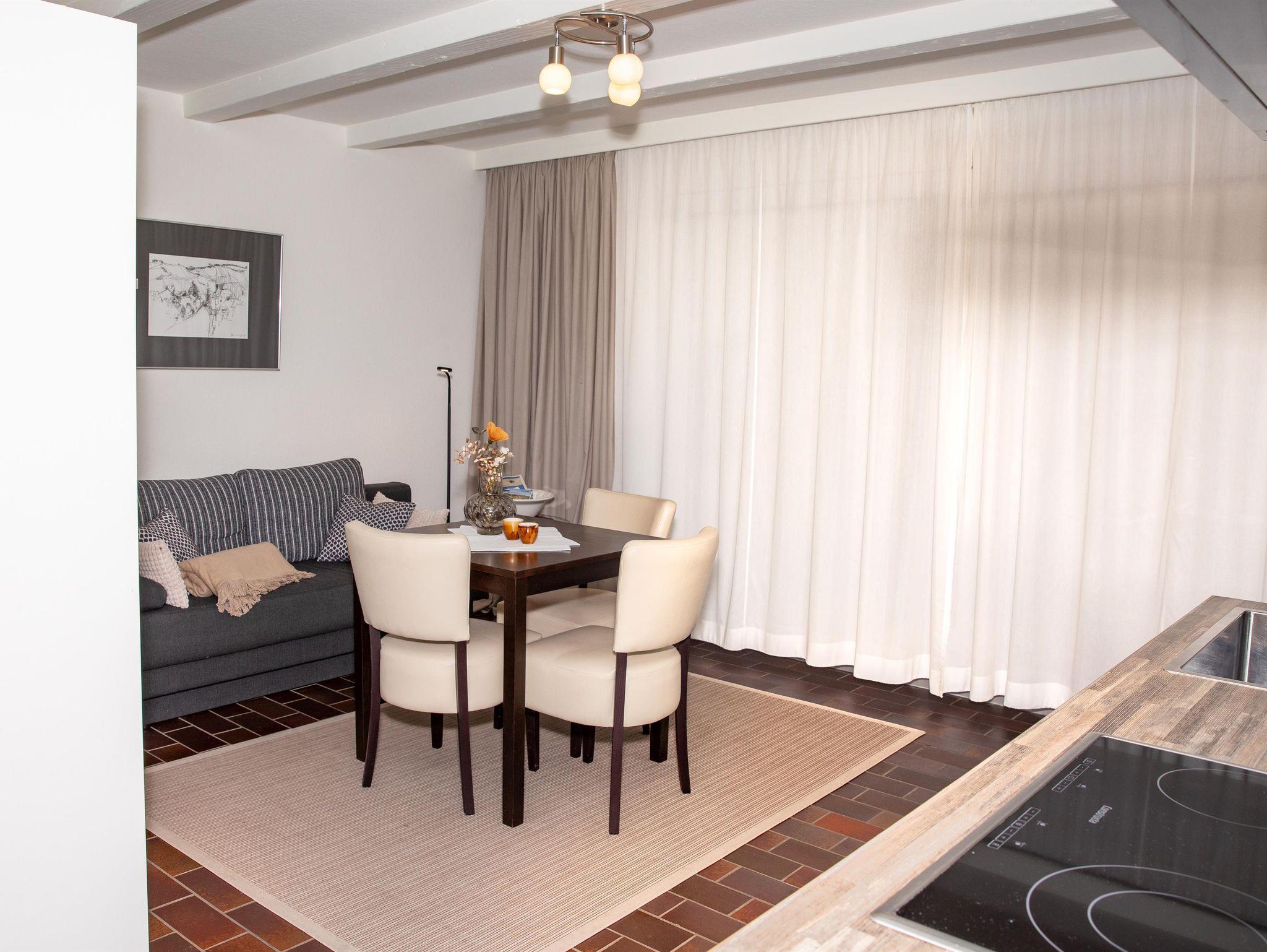 Das Ferienappartement Devonschiefer mit 55 qm verfügt über eine Küchenzeile mit Geschirrspülmaschine, Wohnbereich, Doppelbett, Bad mit Du/WC. Von der eigenen Terrasse können Sie einen herrlichen Gartenblick genießen.