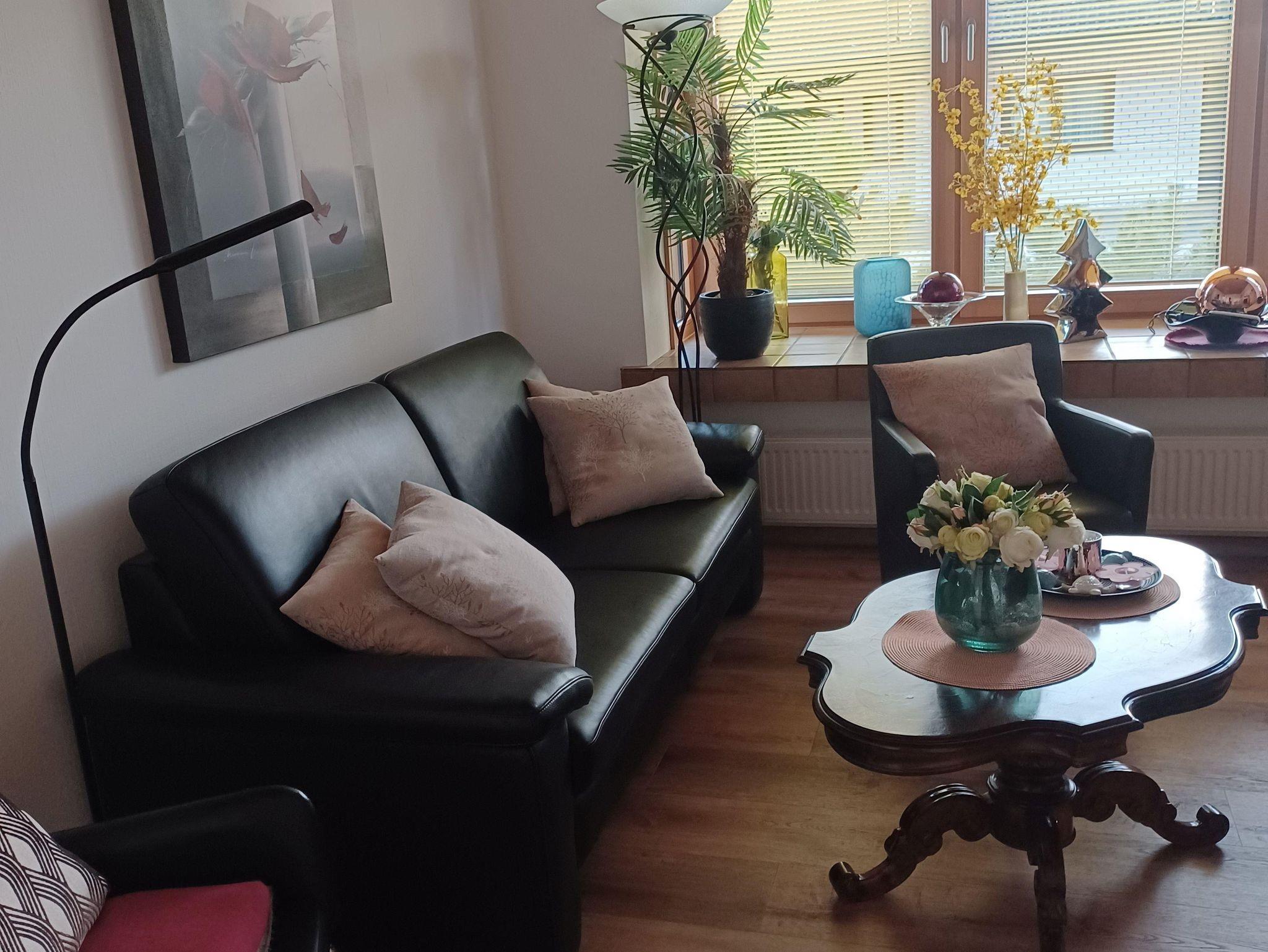 Herzlich willkommen bei Familie Fischer! 58 gemütliche Quadratmeter für 1-2 Personen in ruhiger Lage verteilt auf ein Wohnzimmer mit Essecke, ein Schlafzimmer, Küche, Bad mit Dusche/WC, eine sonnige Sitzgelegenheit auf der Terrasse und ein eigener PKW-Einstellplatz! Parterre gelegen schafft ein separater Eingang eine angenehme Privatsphäre.
