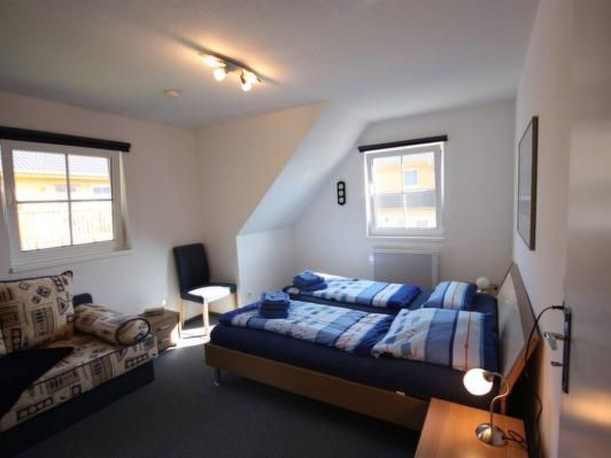 1 Schlafzimmer mit Doppelbett, Einzelbett, großem Schrank, Ganzkörperspiegel, Stuhl