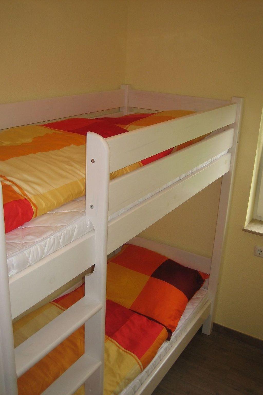Mit einer Wohnfläche von ca. 55 m² bietet diese schick und modern eingerichtete Unterkunft ausreichend Platz für bis zu vier Personen. Der großzügig gestaltete Wohnbereich verfügt über eine Eckcouch, einen Couchtisch und einen Satelliten TV. Das offene Küchenstudio ist mit einem Backofen, einem Cerankochfeld, einem (Tief-)Kühlschrank, einer Spülmaschine, einer Mikrowelle, einem Toaster, einem Wasserkocher, einer Kaffeemaschine, sowie einem Esstisch mit Stühlen komplett ausgestattet und lässt somit keine Wünsche offen. In einem der beiden Schlafzimmer befindet sich ein Doppelbett (1,60 Meter Breite), eine Kommode mit Spiegel und ein Kleiderschrank. Das Kinderzimmer verfügt über ein Etagenbett (0,90 Meter Breite). Das Bad mit ebenerdiger Dusche und das WC sind getrennt und jeweils mit einem Waschbecken ausgestattet. Eine (Fußboden-)Heizung befindet sich in allen Räumen, Internet ist nicht vorhanden. Darüber hinaus können Sie eine Waschmaschine gebührenfrei nutzen.