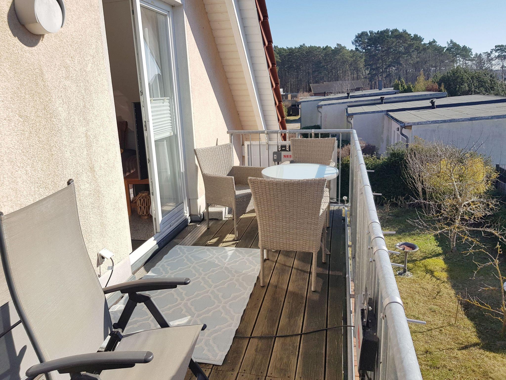 Moderne Villa Florenz OG mit Balkon und Panoramablick aufs Achterwasser, strandnah und ruhig gelegen.