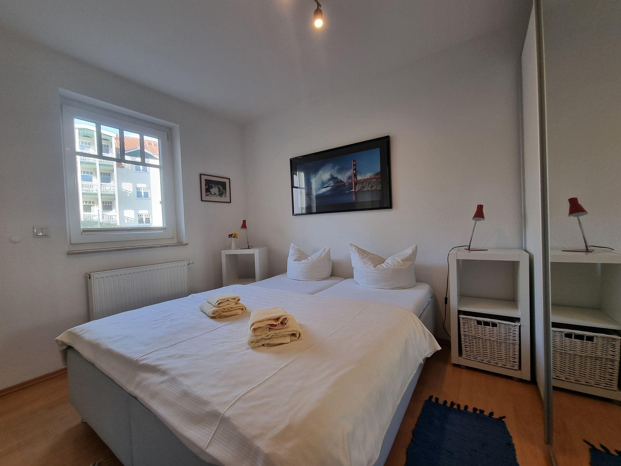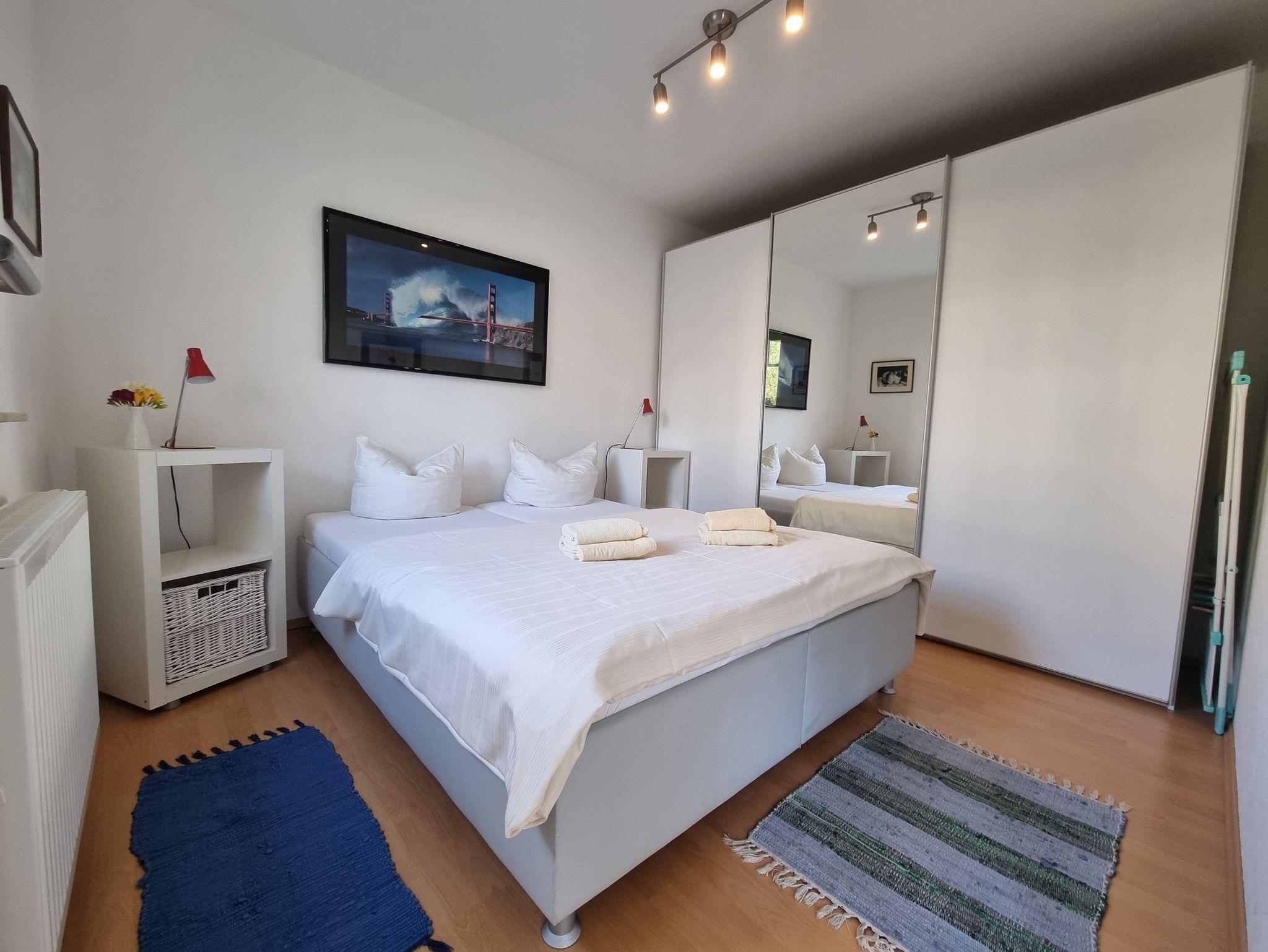 Die Wohnung verfügt über ein Schlafzimmer mit Doppelbett und ein Schlafzimmer mit Schlafsofa.