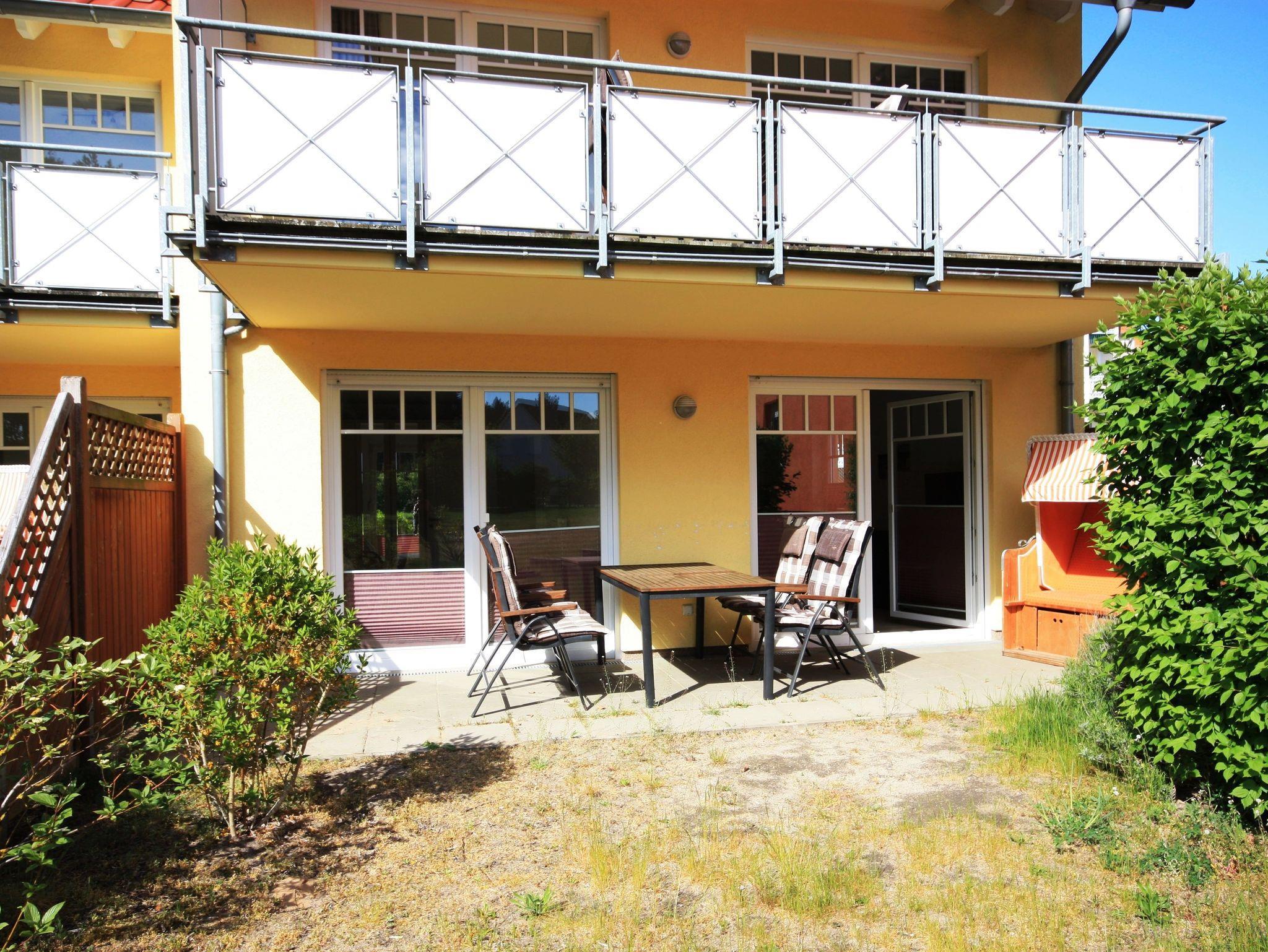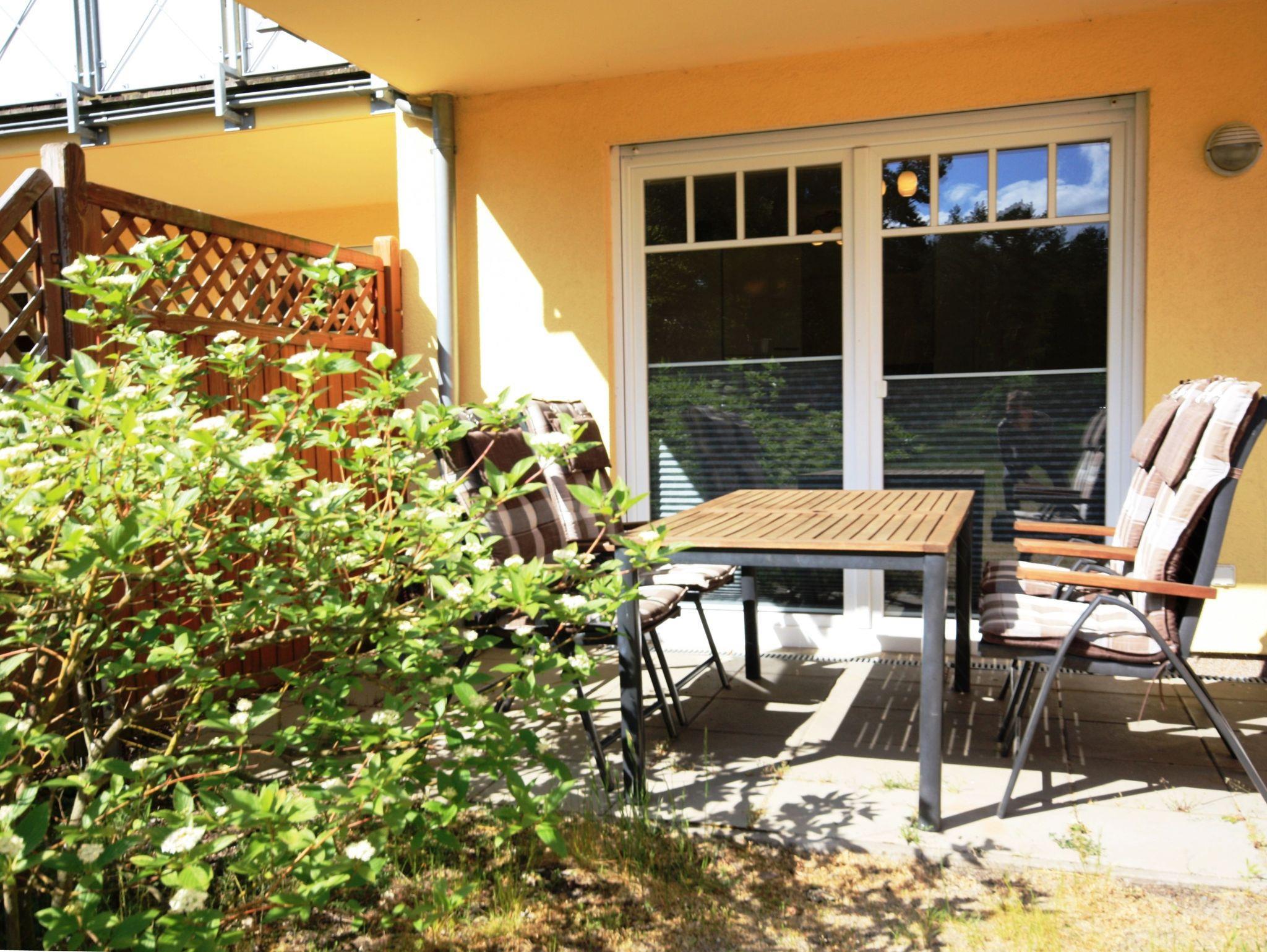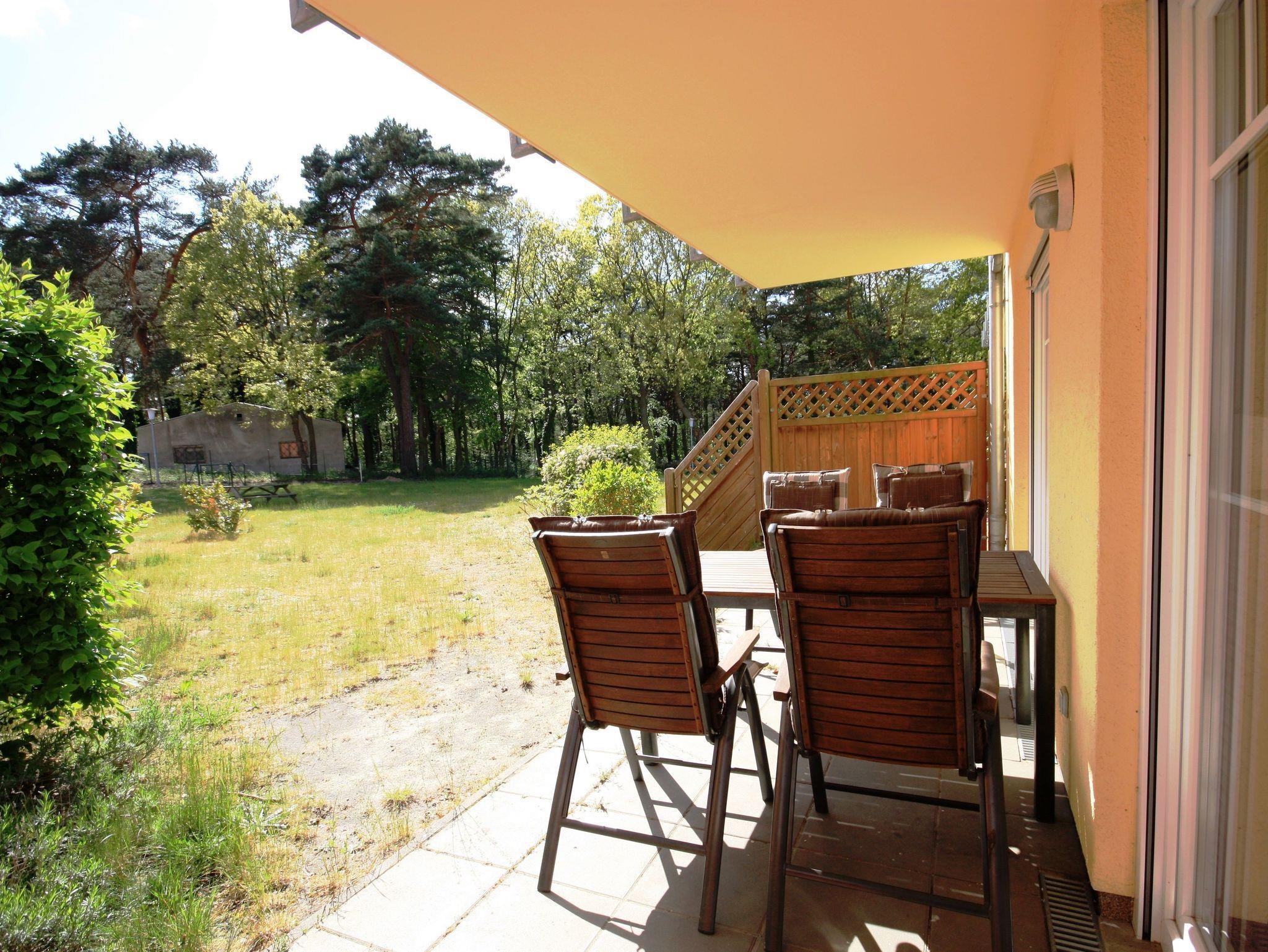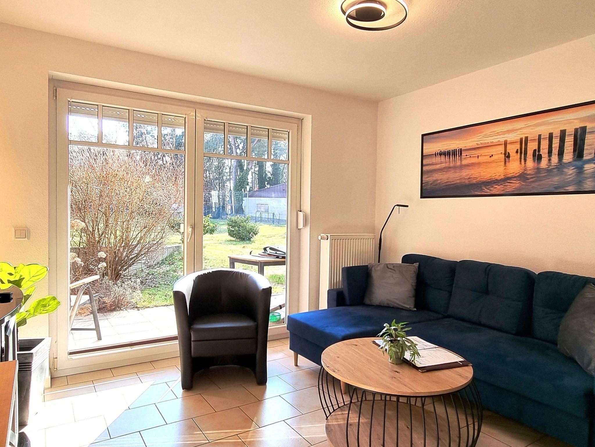 Die Ferienwohnung liegt im Erdgeschoß des Ferienhauses. Sie besteht aus Wohnzimmer, kompl. ausgestatteter Küche, Schlafzimmer und Tageslichtbad. Die Ausstattung der Einbauküche ist neuwertig funktional und qualitativ hochwertig unter anderem mit Toaster, Kaffeemaschine, Backofen mit Heißluft, Kochfeld, Geschirrspüler, Gefrierfach. Große Süd-Terrasse mit Blick auf den Küstenwald, große Spielwiese. Grillplatz