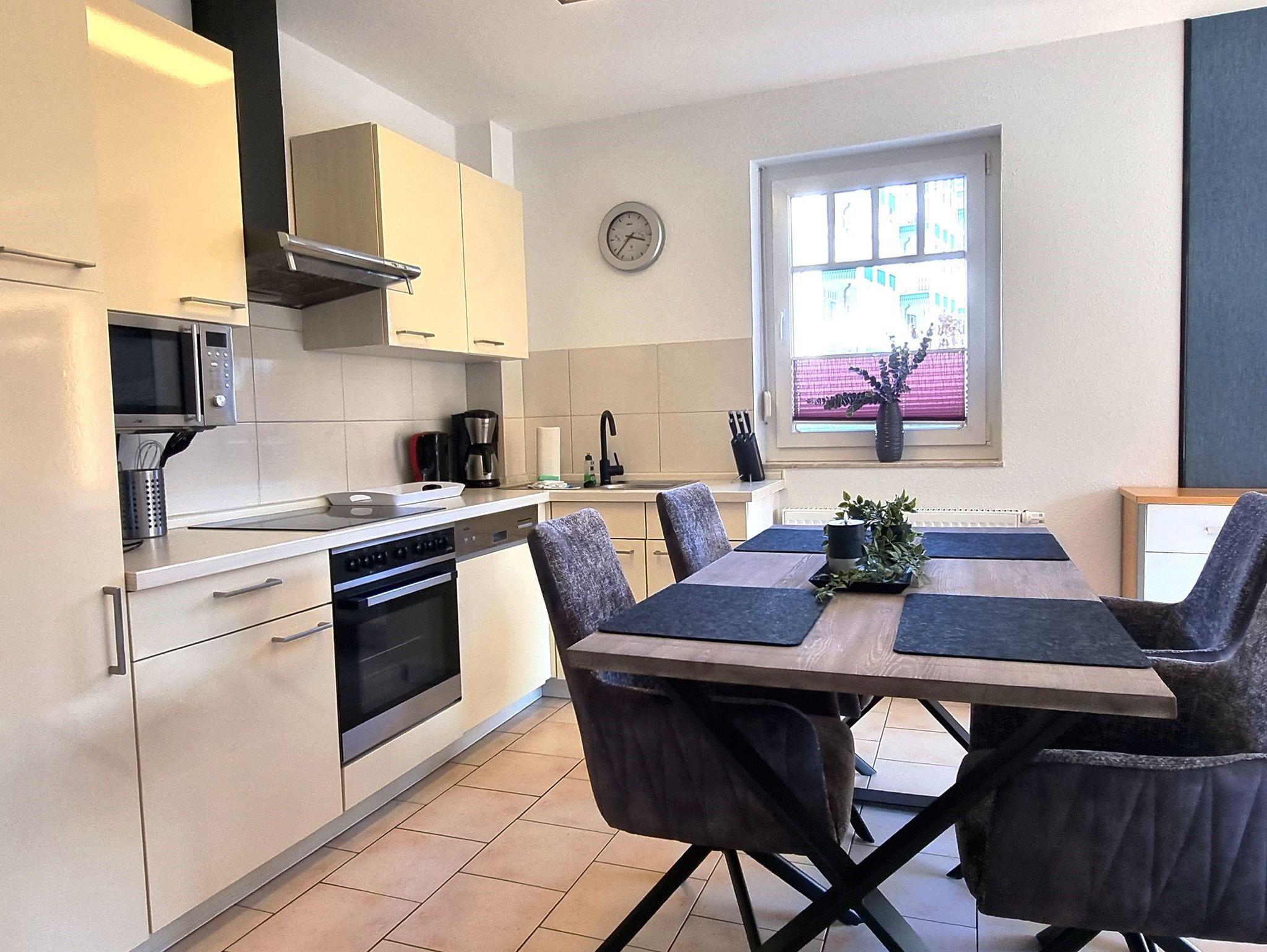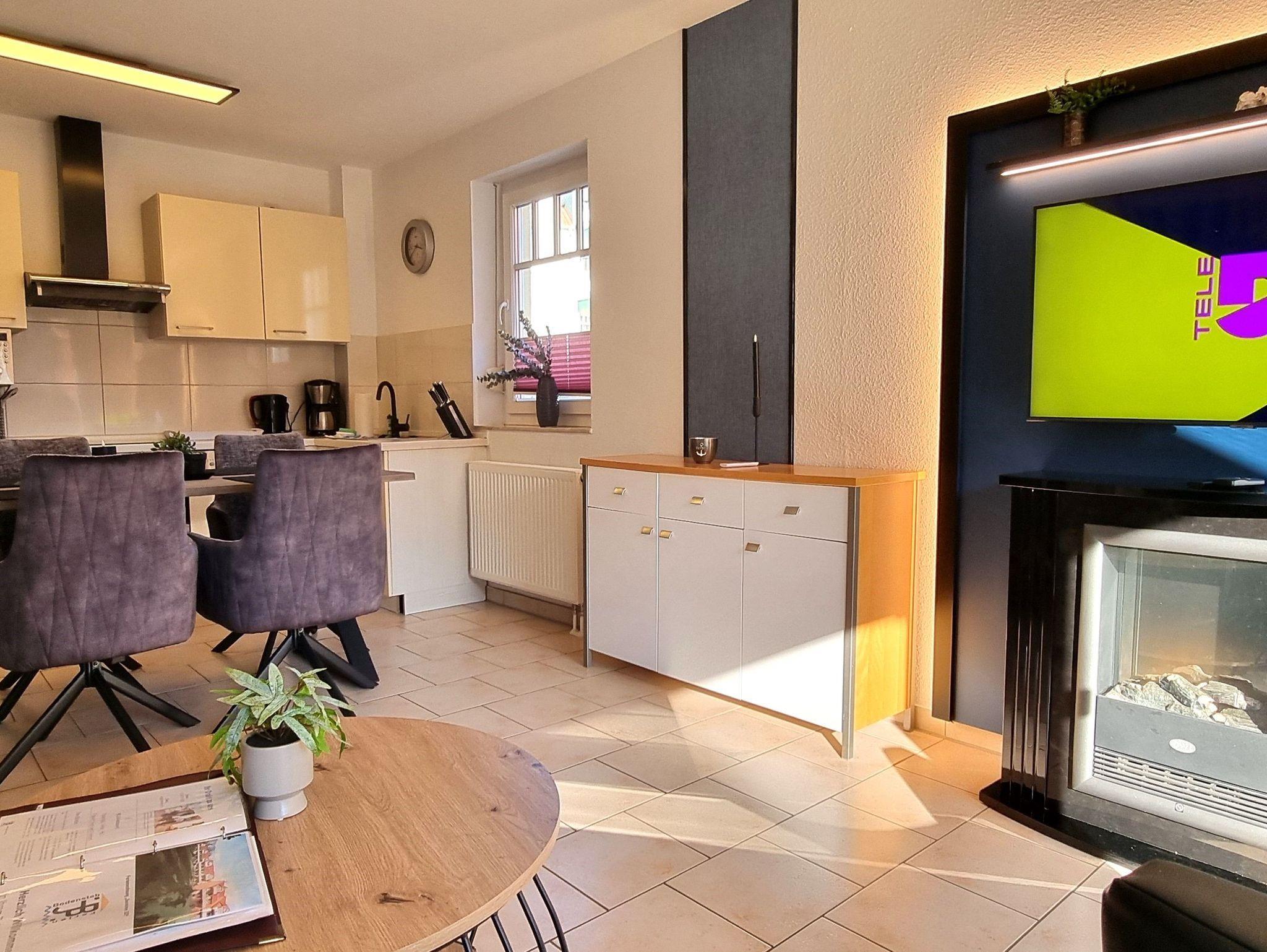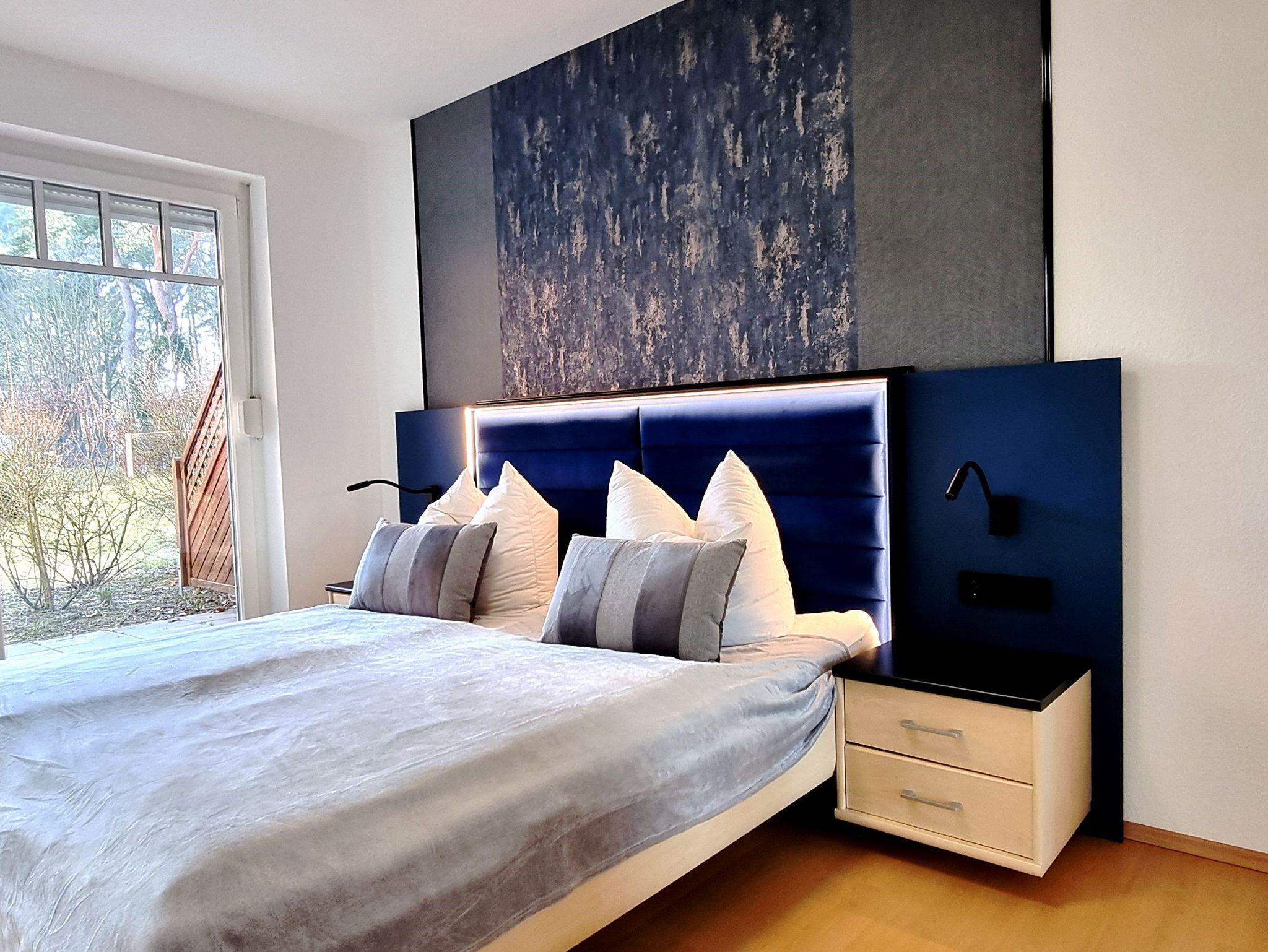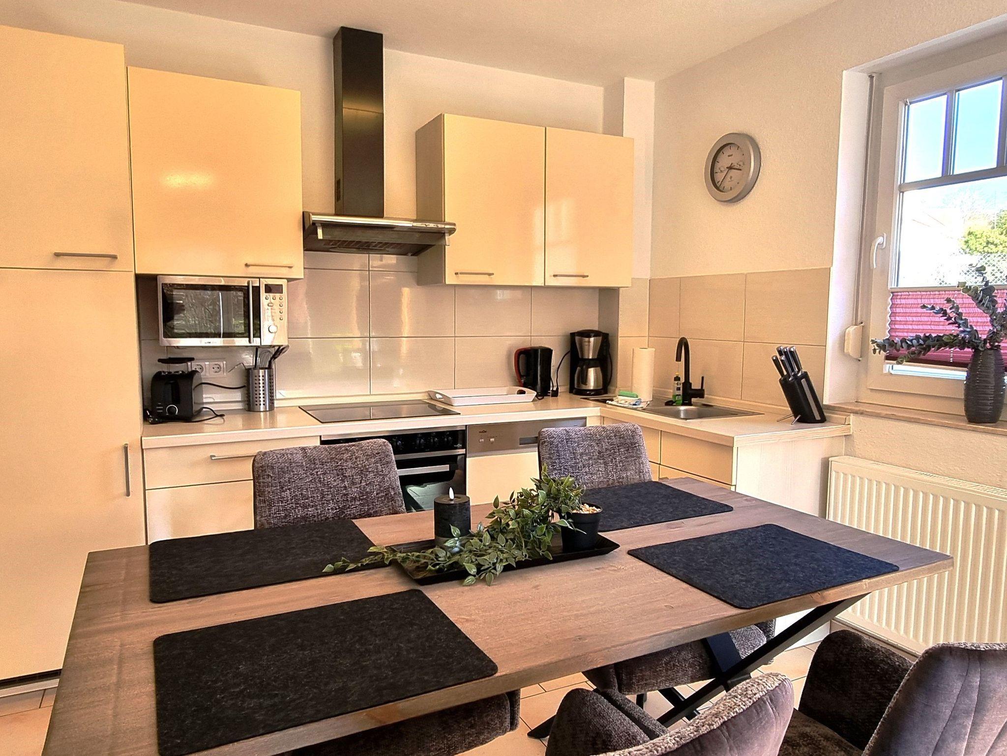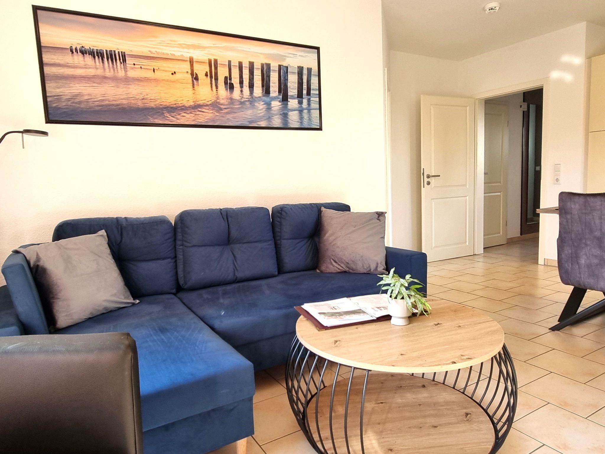 Die Ferienwohnung liegt im Erdgeschoß des Ferienhauses. Sie besteht aus Wohnzimmer, kompl. ausgestatteter Küche, Schlafzimmer und Tageslichtbad. Die Ausstattung der Einbauküche ist neuwertig funktional und qualitativ hochwertig unter anderem mit Toaster, Kaffeemaschine, Backofen mit Heißluft, Kochfeld, Geschirrspüler, Gefrierfach. Große Süd-Terrasse mit Blick auf den Küstenwald, große Spielwiese. Grillplatz
