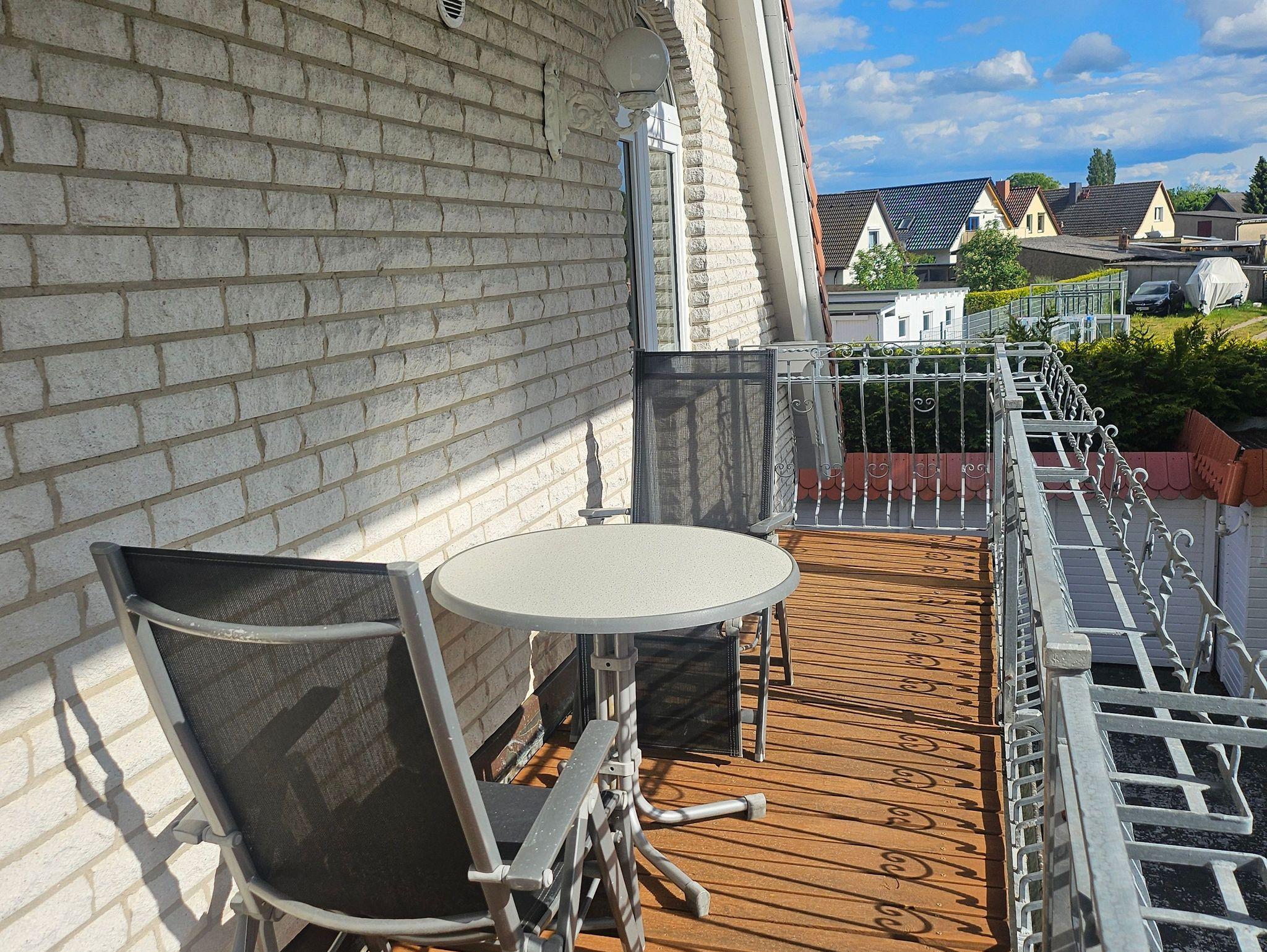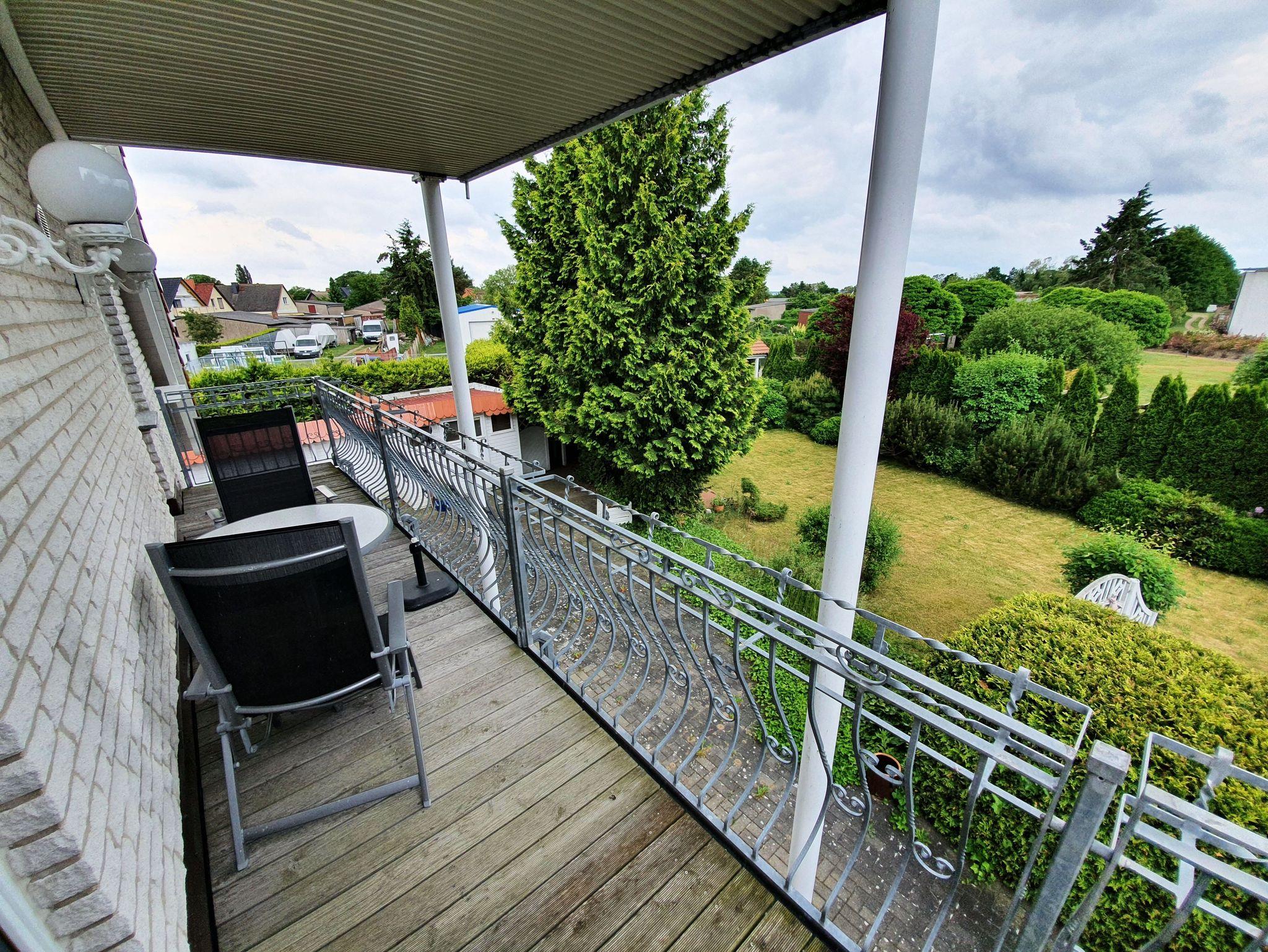 • großer Balkon mit Blick Richtung Achterwasser, tlw. überdacht