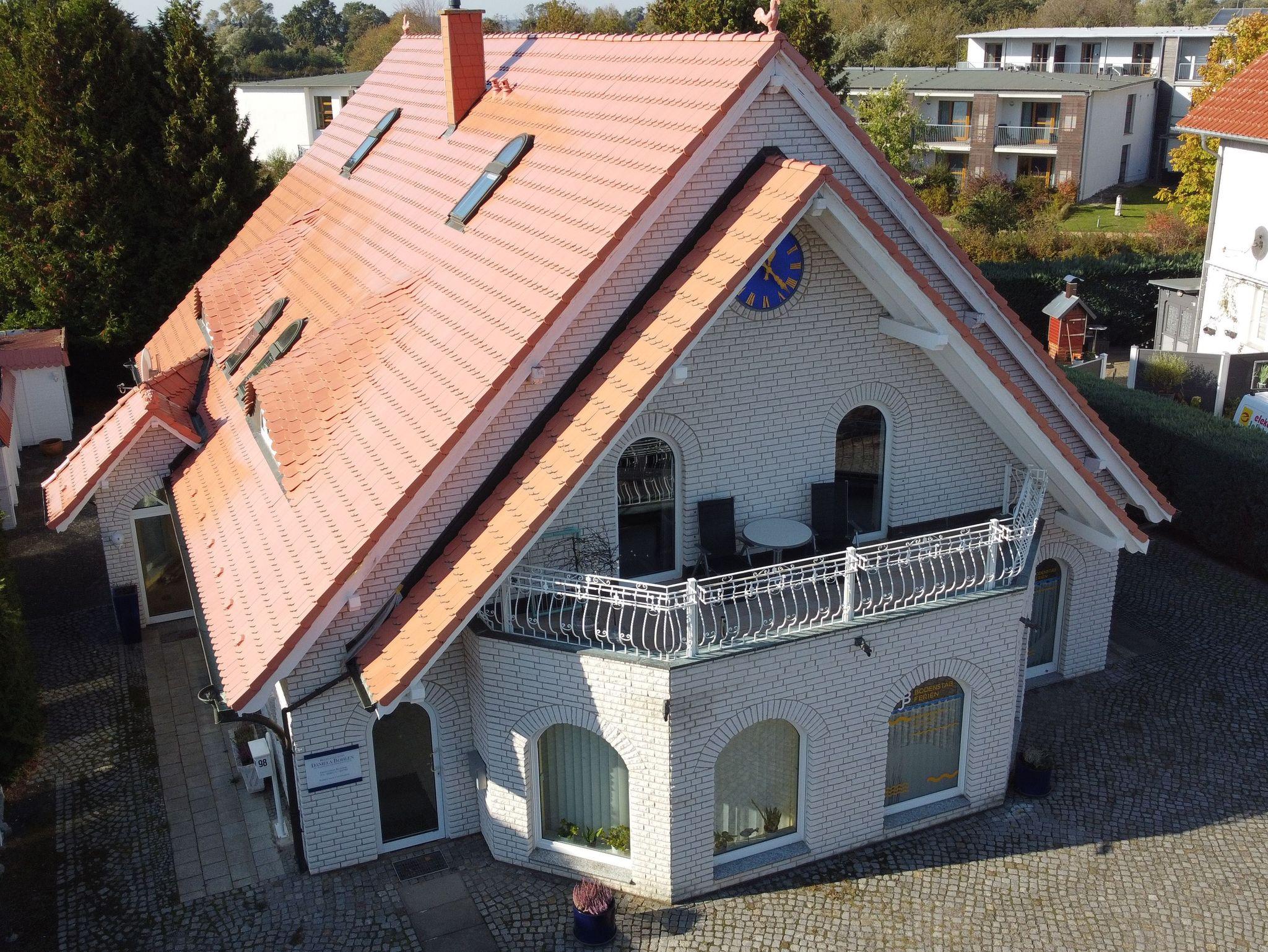 Das 1998 sehr aufwändig gebaute Haus liegt in der Ortslage von Koserow. Die nach südwesten ausgerichteten Ferienwohnungen haben einen Blick über die an dieser Stelle recht schmale Insel bis zum Achterwasser. Auf den Balkonen genießen sie den Sonnenuntergang. Das Haus verfügt über die 3 Ferienwohungen Lee, Luv und Utkiek, die sich im Obergeschoß und Dachgeschoß befinden. Im Erdgeschoß sind Gewerbeeinheiten untergebracht. Der große Garten kann zum Grillen, Entspannen und Spielen genutzt werden.