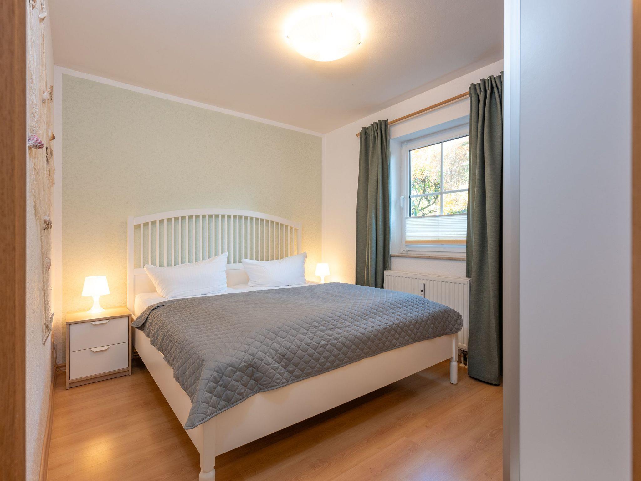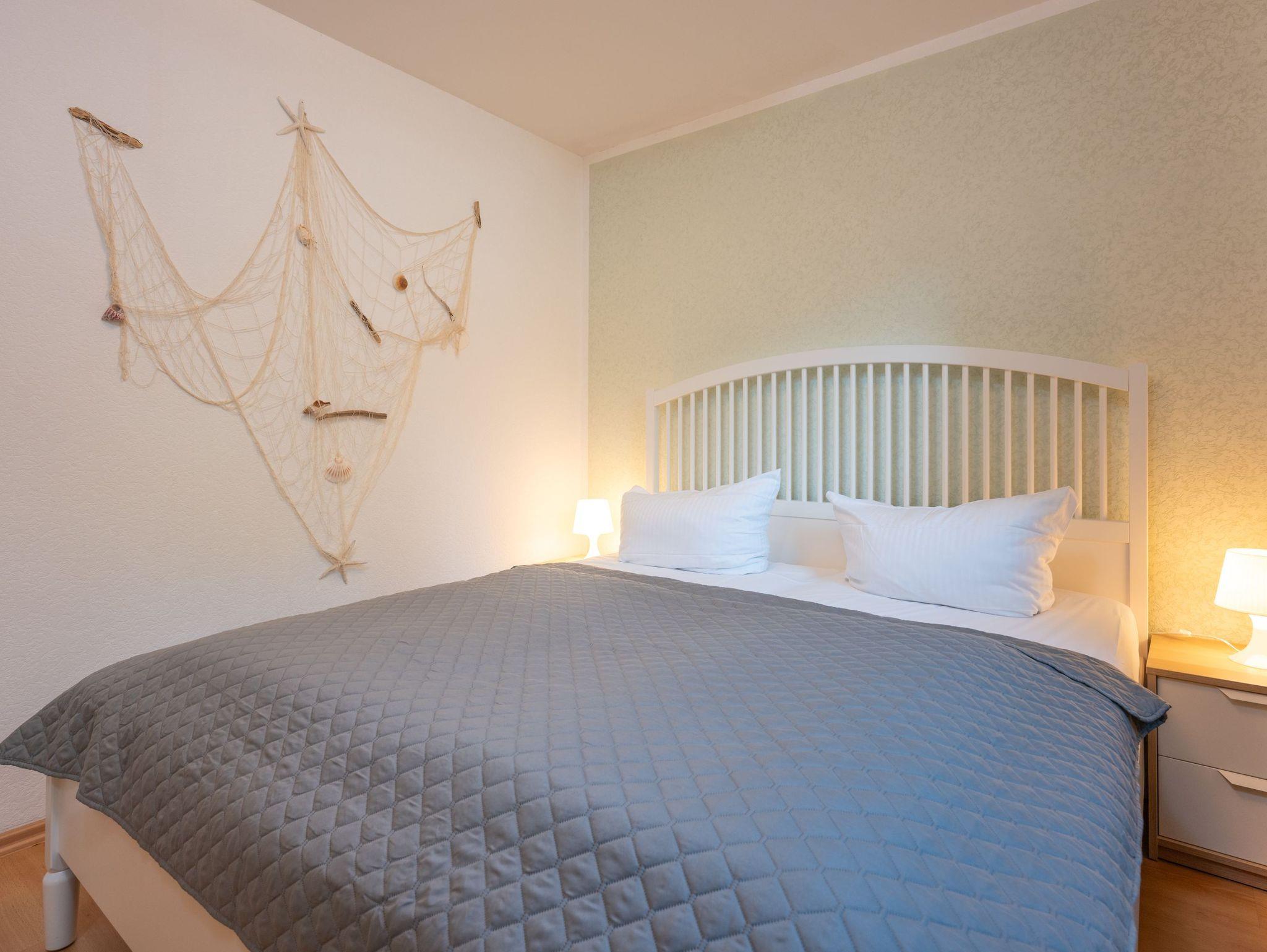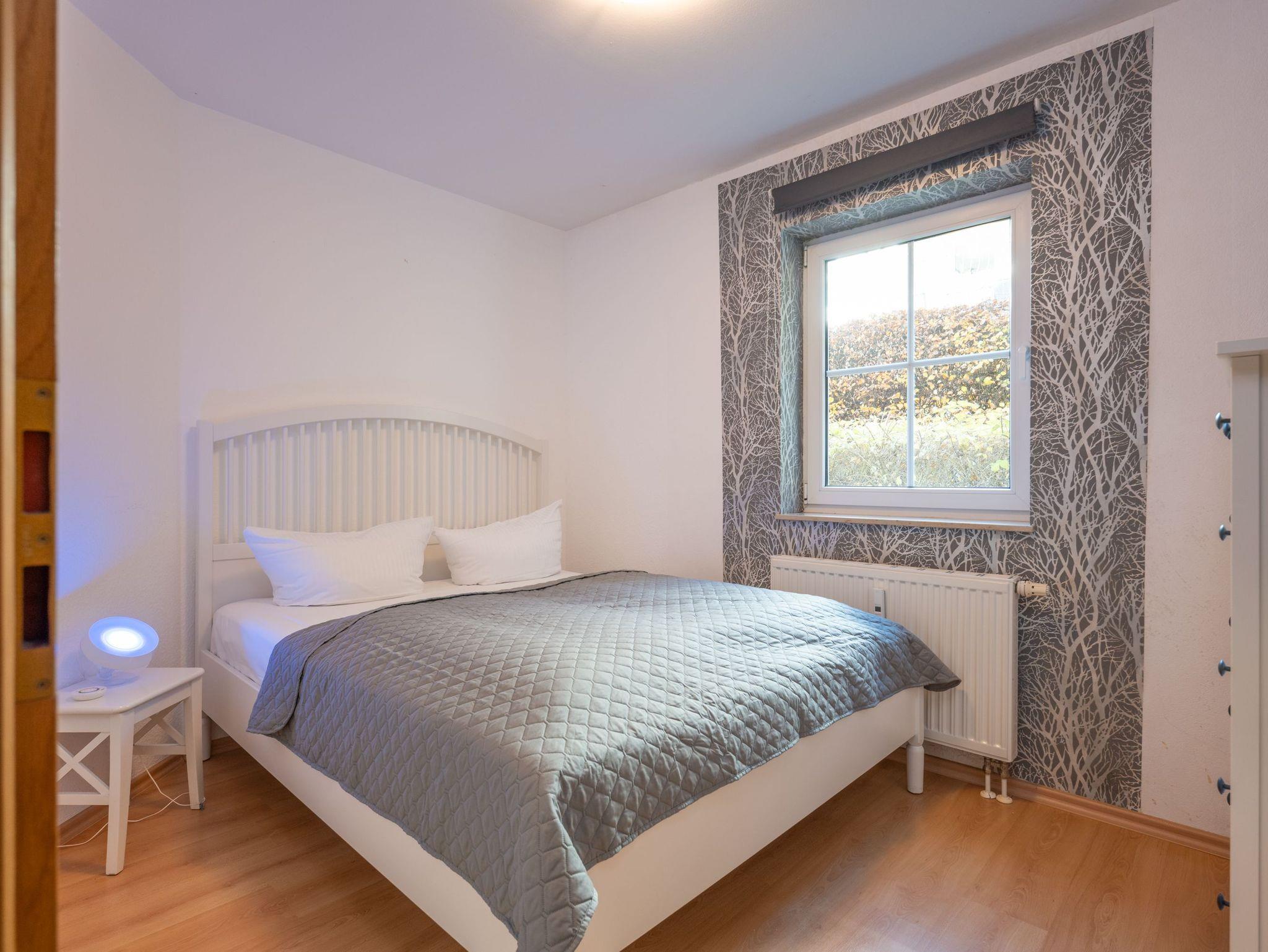 Zwei separate Schlafzimmer sorgen für erholsame Nächte eines mit einem komfortablen Doppelbett (180 x 200 cm), das andere mit einem Doppelbett (160 x 200 cm). Das Badezimmer verfügt über Badewanne, WC und Waschbecken.
