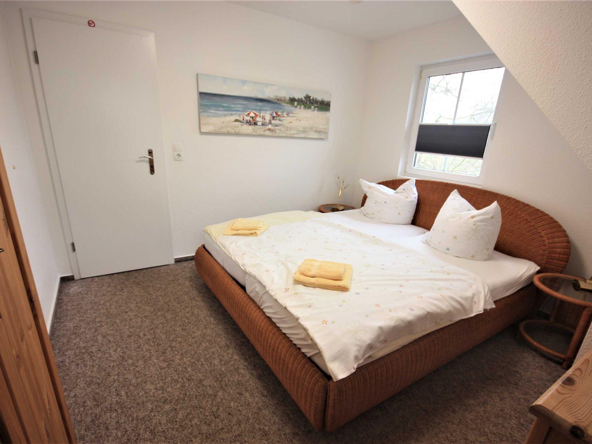 Die Wohnung ist im modernen Landhausstil mit Laminatboden und rot/brauner Möblierung gehalten. Die Wohnung verfügt über ein Schlafzimmer mit Doppelbett und ein Schlafsofa im Wohnzimmer. Die Wohnung ist ideal geeignet für Paare, Einzelreisende und junge Familien. Im Schlafzimmer kann ein Kinderbett aufgestellt werden.