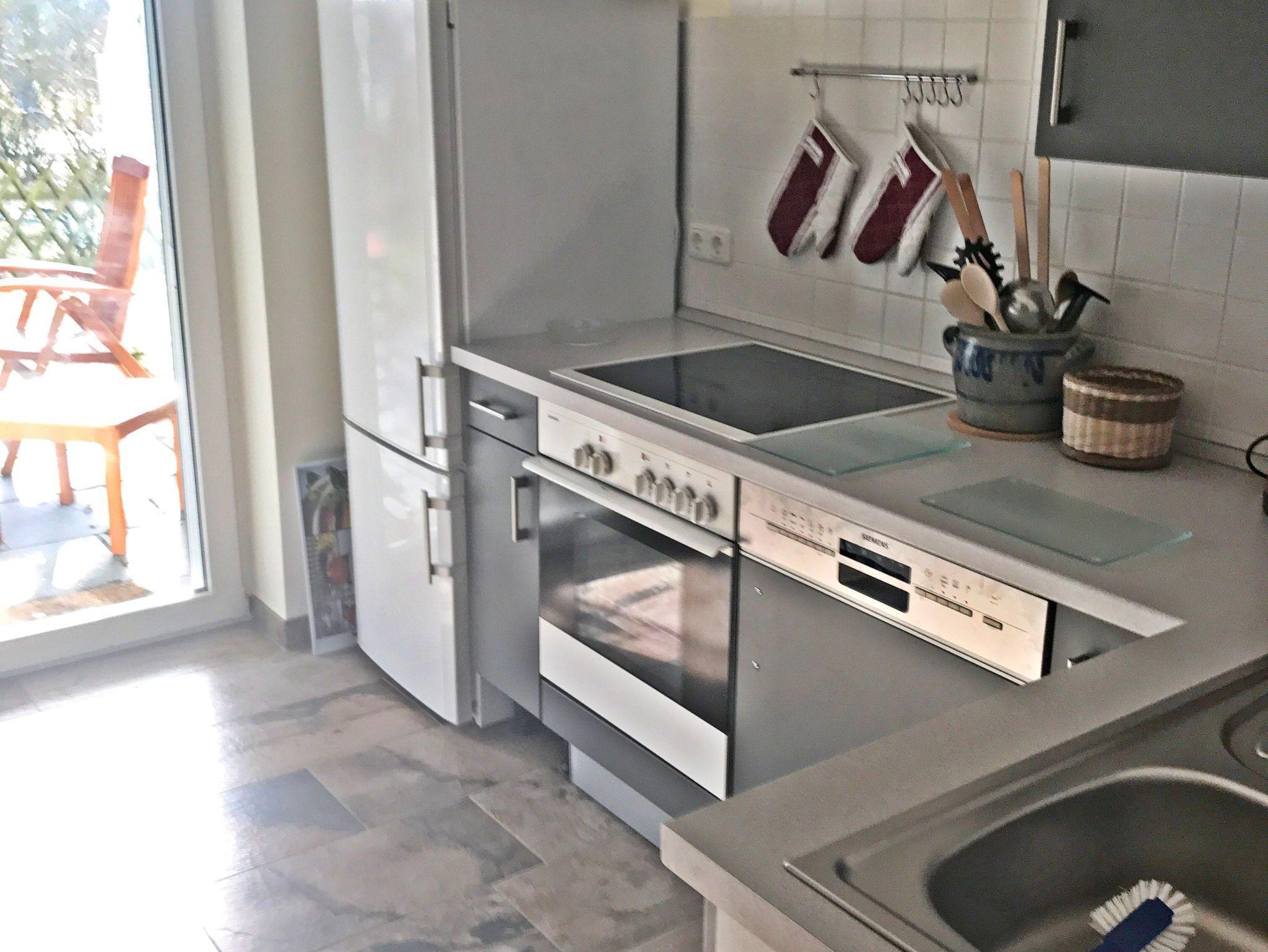1 Küche mit Küchnezeile und Zugang zur Terrasse