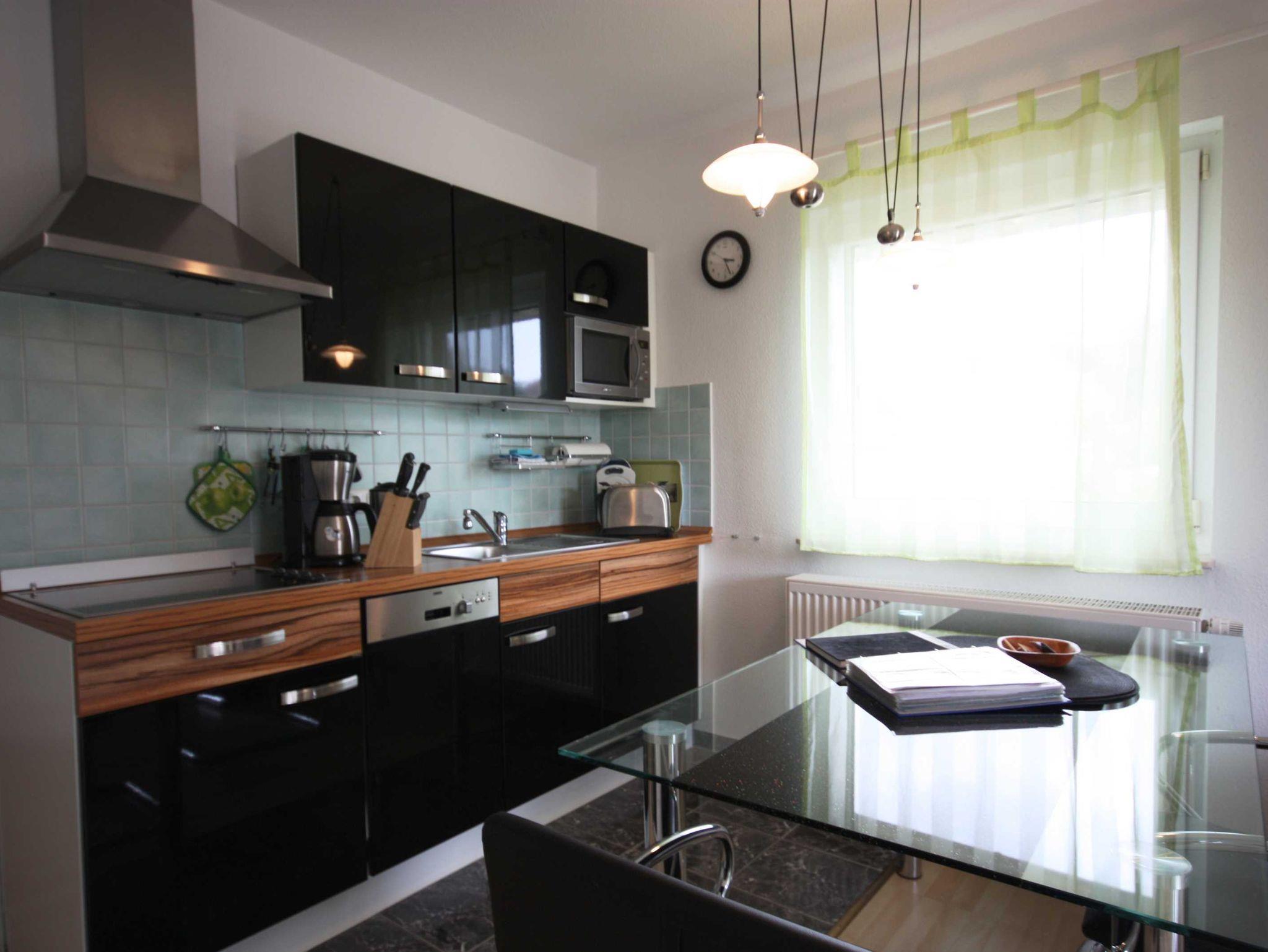Modern und hochwertig eingerichtete Ferienwohnung im Pfeffer und Salz-Stil (schwarz/weiß). Ein Elektrokachelofenkamin im großen Wohnzimmer sorgt für auch an kälteren Tagen für ein hohes Wohlfühlgefühl, so dass Sie sich schon nach kurzer Zeit wie zu Haus fühlen werden.